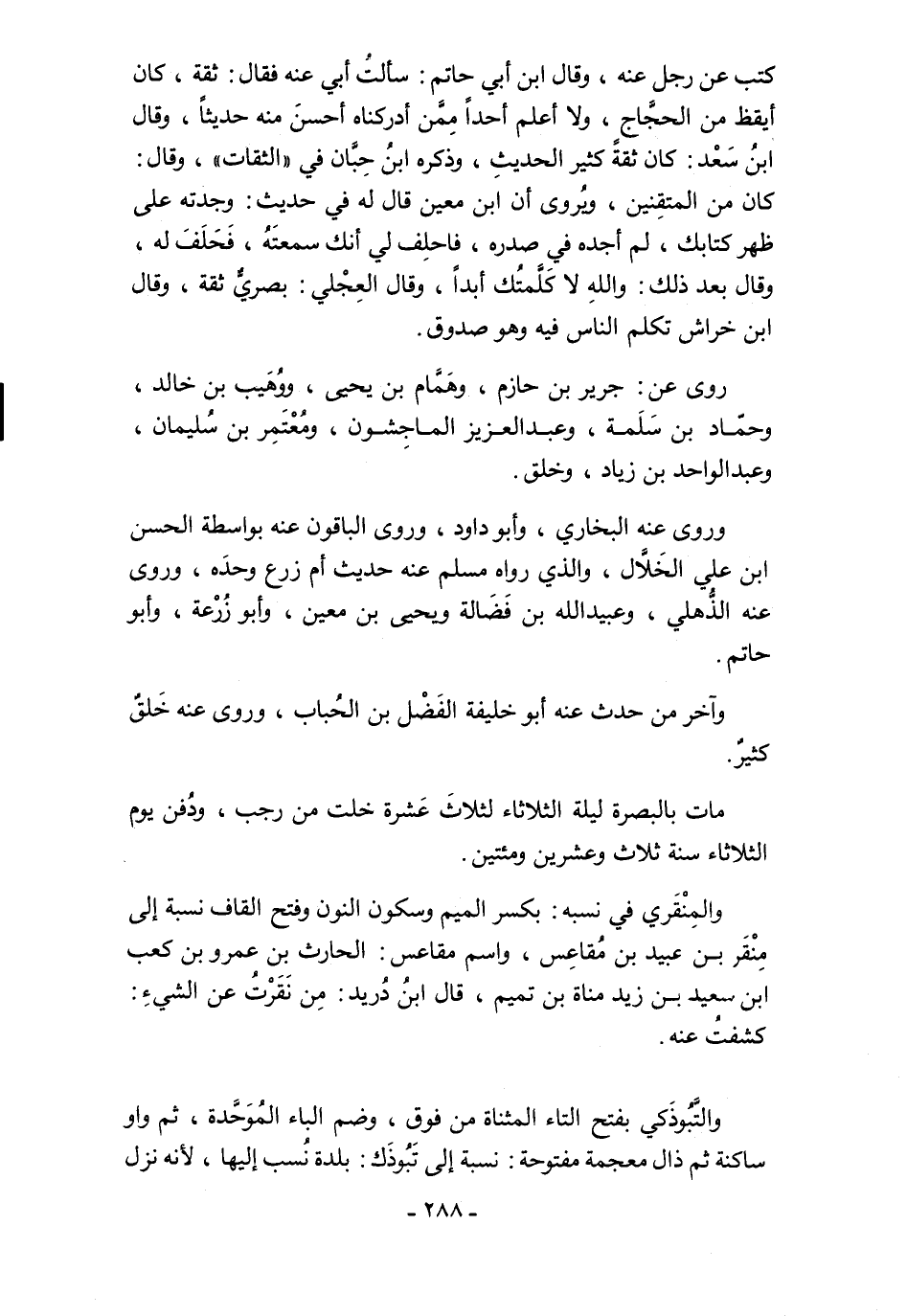 وآخر من حدث عنه أبو خليفة الفَضْل بن الحُباب، وروى عنه خَلقٌ كثيرٌ.