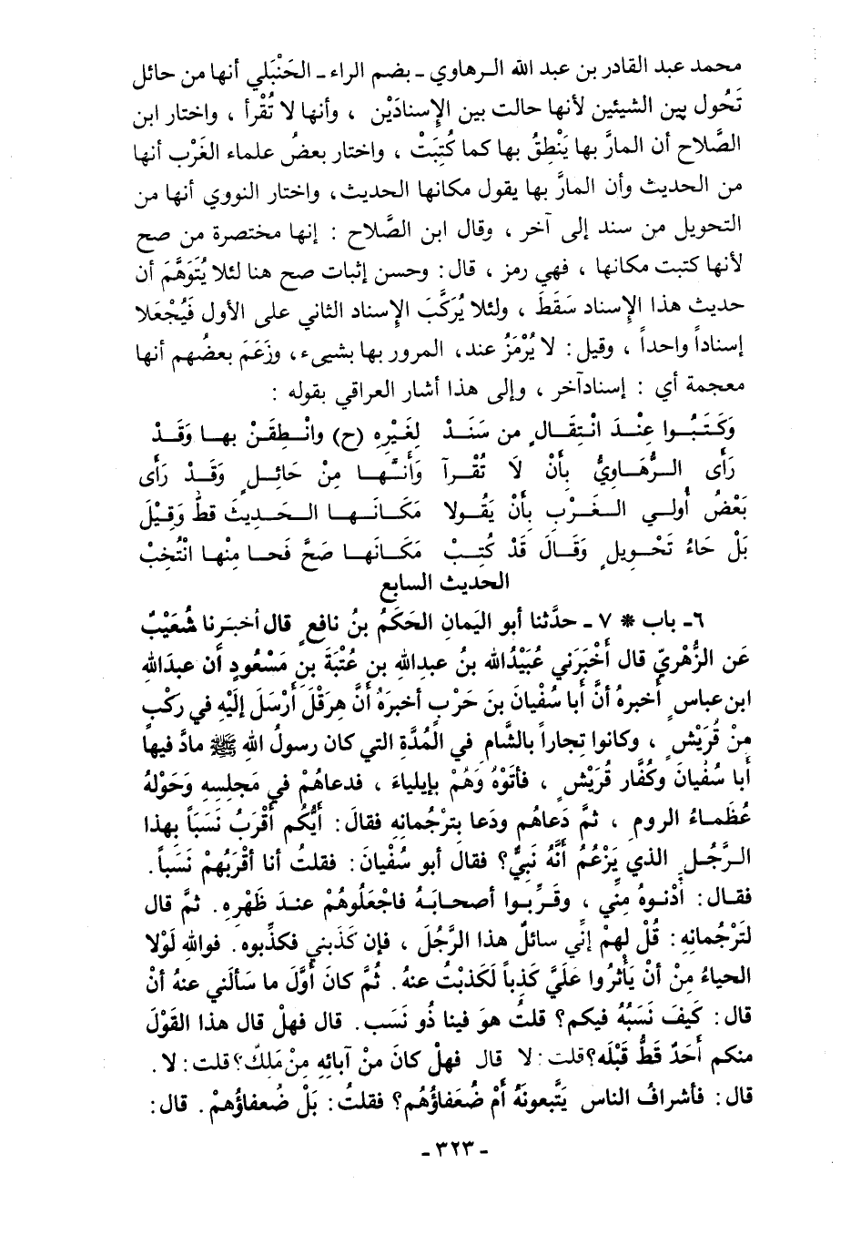 محمَّد عبد القادر بن عبد الله الرهاوي -بضم الراء- الحَنْبَلي أنها من حائل تَحُول بين الشيئين لأنها حالت بين الإِسنادَيْن، وأنها لا تُقْرأ، واختار ابن الصَّلاح أن المارَّ بها يَنْطِقُ بها كما كُتِبَتْ، واختار بعضُ علماء الغَرْب أنها من الحديث وأن المارَّ بها يقول مكانها الحديث، واختار النوويَ أنها من التحويل من سند إلى آخر، وقال ابن الصَّلاح: إنها مختصرة من صح لأنها كتبت مكانها، فهي رمز، قال: وحسن إثبات صح هنا لئلا يُتَوَهَّمَ أن حديث هذا الإِسناد سَقَطَ، ولئلا يُرَكَّبَ الإِسناد الثاني على الأول فَيُجْعَلا إسنادًا واحدًا، وقيل: لا يُرْمَزُ عند، المرور بها بشيىء، وزَعَمَ بعضهم أنها معجمة أي: إسناد آخر، وإلى هذا أشار العراقي بقوله: