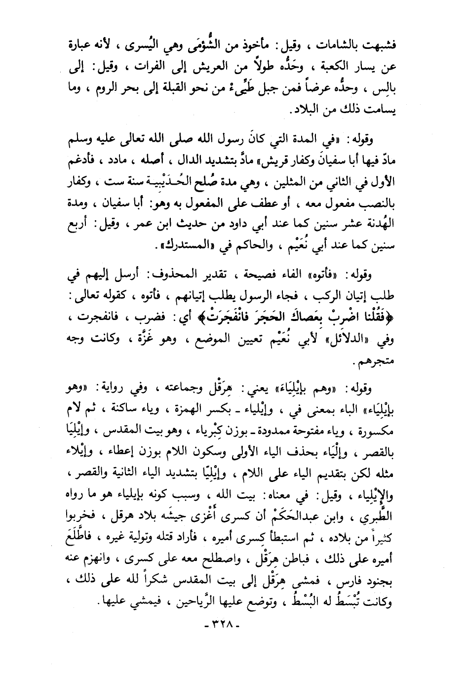 وقوله: "وهم بإيْلِيَاءَ" يعني: هِرَقْل وجماعته، وفي رواية: "وهو بإيْلِيَاء" الباء بمعنى في، وإيْلياء -بكسر الهمزة، وياء ساكنة، ثم لام مكسورة، وياء مفتوحة ممدودة- بوزن كِبْرياء، وهو بيت المقدس، وإيْلِيَا بالقصر، وإلْيَاء بحذف الياء الأولى وسكون اللام بوزن إعطاء، وإيْلاء مثله لكن بتقديم الياء على اللام، وإيْلِيّا بتشديد الياء الثانية والقصر، والإِيْلِياء، وقيل: في معناه: بيت الله، وسبب كونه بإيلياء هو ما رواه الطَّبري، وابن عبد الحَكَمْ أن كسرى أَغْزى جيشَه بلاد هرقل، فخربوا كثيرًا من بلاده، ثم استبطأ كِسرى أميره، فأراد قتله وتولية غيره، فاطَّلَعَ أميره على ذلك، فباطن هِرَقْل، واصطلح معه على كسرى، وانهزم عنه بجنود فارس، فمشى هِرَقْل إلى بيت المقدس شكرًا لله على ذلك، وكانت تُبْسَطُ له البُسْطُ، وتوضع عليها الرَّياحين، فيمشي عليها.