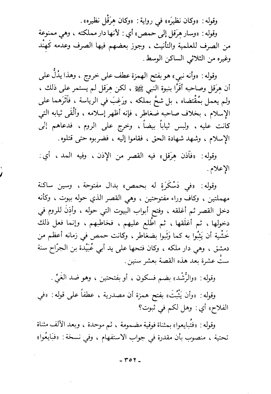 وقوله: "وسار هِرَقل إلى حمص" أي: لأنها دار مملكته، وهي ممنوعة من الصرف للعلمية والتأنيث، وجوز بعضهم فيها الصرف وعدمه كَهِنْد وغيره من الثلاثي الساكن الوسط.