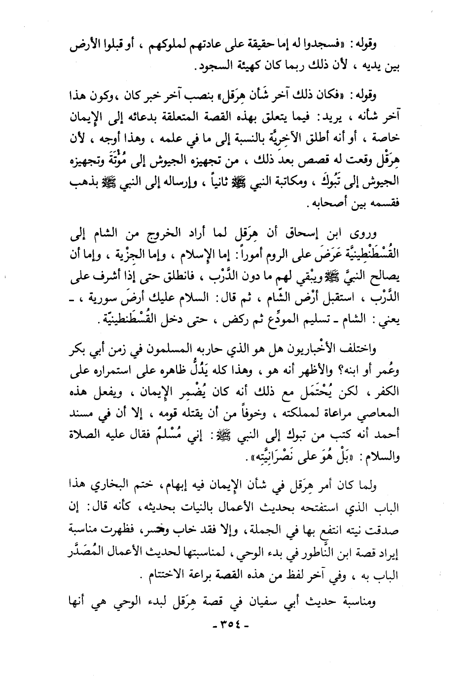 ولما كان أمر هِرَقل في شأن الإِيمان فيه إبهام، ختم البخاري هذا الباب الذي استفتحه بحديث الأعمال بالنيات بحديثه، كأنه قال: إن صدقت نيته انتفع بها في الجملة، وإلا فقد خاب وخسر، فظهرت مناسبة إيراد قصة ابن النَّاطور في بدء الوحي، لمناسبتها لحديث الأعمال المُصَدَّر الباب به، وفي آخر لفظ من هذه القصة براعة الاختتام.