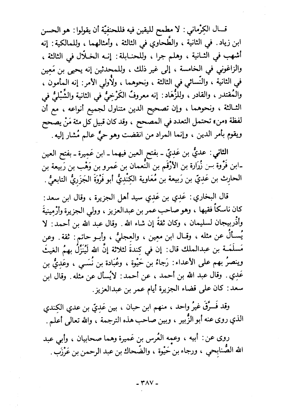 وقد فَرَّق غيرُ واحد، منهم ابن حبان، بين عَدِيّ بن عدي الكِندي الذي روى عنه أبو الزُّبير، وبين صاحب هذه الترجمة، والله تعالى أعلم.