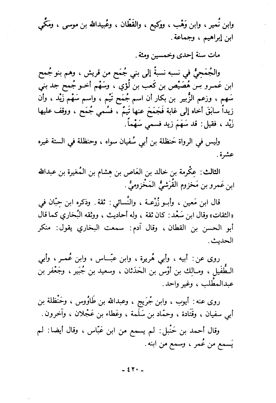 وليس في الرواة حَنظلة بن أبي سُفيان سواه، وحنظلة في الستة غيره عشرة.
