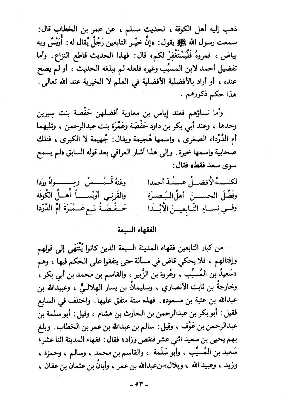 وفَضَّلَ الحسنَ أهلُ البَصرَة ... والقَرنِي أوَيْسًا أَهلُ الكُوفَة