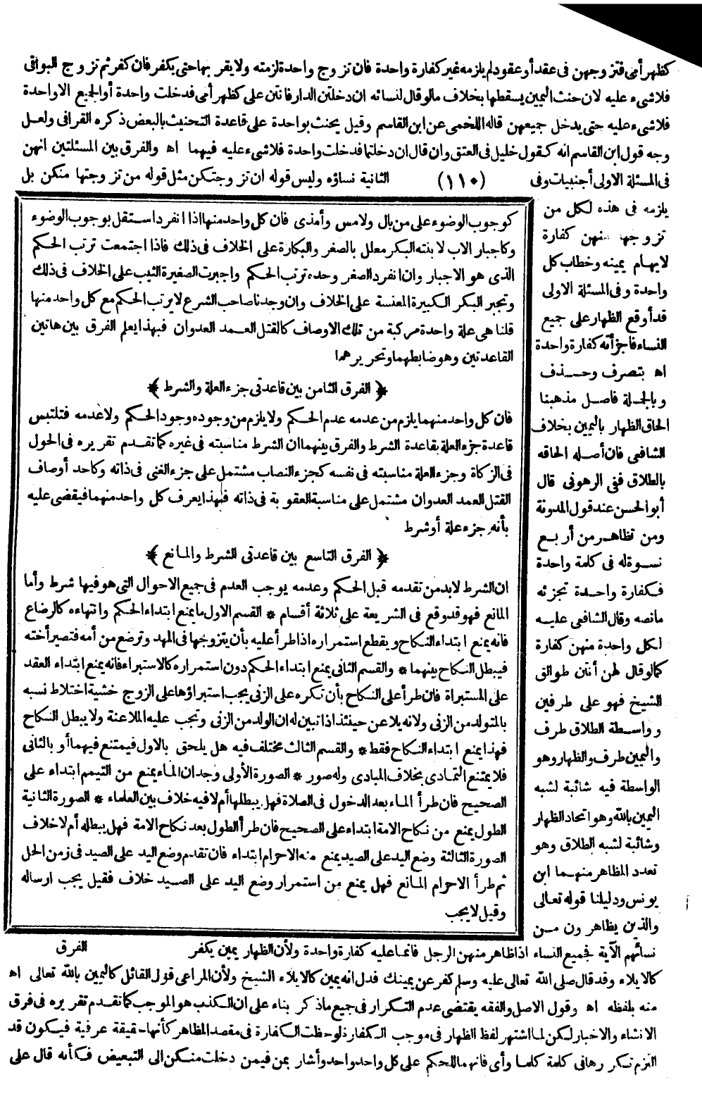 (الْفَرْقُ التَّاسِعُ بَيْنَ قَاعِدَتَيْ الشَّرْطِ وَالْمَانِعِ) أَنَّ الشَّرْطَ لَا بُدَّ مِنْ تَقَدُّمِهِ قَبْلَ الْحُكْمِ وَعَدَمُهُ يُوجِبُ الْعَدَمَ فِي جَمِيعِ الْأَحْوَالِ الَّتِي هُوَ فِيهَا شَرْطٌ وَأَمَّا الْمَانِعُ فَهُوَ قَدْرٌ وَقَعَ فِي الشَّرِيعَةِ عَلَى ثَلَاثَةِ أَقْسَامٍ الْقِسْمُ الْأَوَّلُ مَا يَمْنَعُ ابْتِدَاءً الْحُكْمَ وَانْتِهَاءَهُ كَالرَّضَاعِ فَإِنَّهُ يَمْنَعُ ابْتِدَاءً النِّكَاحَ وَيَقْطَعُ اسْتِمْرَارَهُ إذَا طَرَأَ عَلَيْهِ بِأَنْ يَتَزَوَّجَهَا فِي الْمَهْدِ وَتَرْضِعَ مِنْ أُمِّهِ فَتَصِيرُ أُخْتُهُ فَيَبْطُلُ النِّكَاحُ بَيْنَهُمَا وَالْقِسْمُ الثَّانِي يَمْنَعُ ابْتِدَاءً الْحُكْمَ دُونَ اسْتِمْرَارِهِ كَالِاسْتِبْرَاءِ فَإِنَّهُ يَمْنَعُ ابْتِدَاءً الْعَقْدَ عَلَى الْمُسْتَبْرَأَةِ فَإِنْ طَرَأَ عَلَى النِّكَاحِ بِأَنْ تُكْرَهَ عَلَى الزِّنَى يَجِبُ اسْتِبْرَاؤُهَا عَلَى الزَّوْجِ خَشْيَةَ اخْتِلَاطِ نَسَبِهِ بِالْمُتَوَلِّدِ مِنْ الزِّنَى وَلِأَنَّهُ يُلَاعِنُ حِينَئِذٍ إذَا تَبَيَّنَ لَهُ أَنَّ الْوَلَدَ مِنْ الزِّنَى وَتَجِبُ عَلَيْهِ الْمُلَاعَنَةُ وَلَا يَبْطُلُ النِّكَاحُ فَهَذَا يَمْنَعُ ابْتِدَاءً النِّكَاحَ فَقَطْ وَالْقِسْمُ الثَّالِثُ مُخْتَلَفٌ فِيهِ هَلْ يَلْحَقُ بِالْأَوَّلِ فَيَمْتَنِعُ فِيهِمَا أَوْ بِالثَّانِي فَلَا يَمْتَنِعُ التَّمَادِي بِخِلَافِ الْمُبَادِي وَلَهُ صُوَرٌ: الصُّورَةُ الْأُولَى وُجِدَ أَنَّ الْمَاءَ يَمْنَعُ مِنْ التَّيَمُّمِ ابْتِدَاءً عَلَى الصَّحِيحِ.