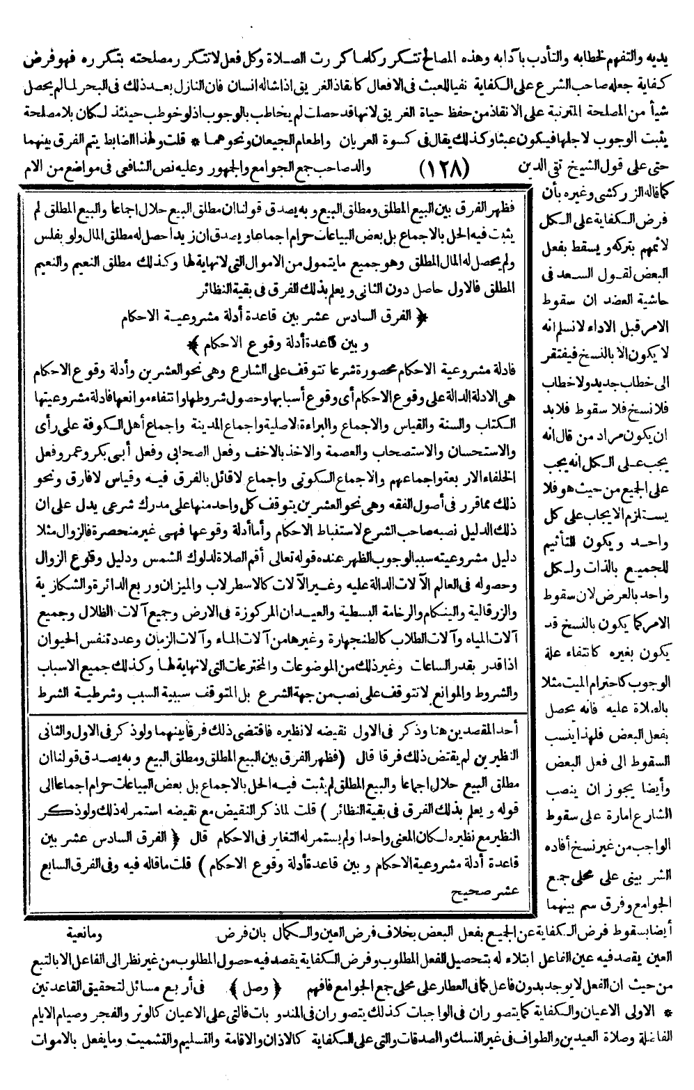 ـــــــــــــــــــــــــــــQيَدَيْهِ وَالتَّفَهُّمُ لِخِطَابِهِ وَالتَّأَدُّبُ بِآدَابِهِ وَهَذِهِ الْمَصَالِحُ تَتَكَرَّرُ كُلَّمَا كُرِّرَتْ الصَّلَاةُ وَكُلُّ فِعْلٍ لَا تُكَرَّرُ مَصْلَحَتُهُ بِتَكَرُّرِهِ فَهُوَ فَرْضُ كِفَايَةٍ جَعَلَهُ صَاحِبُ الشَّرْعِ عَلَى الْكِفَايَةِ نَفْيًا لِلْعَبَثِ فِي الْأَفْعَالِ كَإِنْقَاذِ الْغَرِيقِ إذَا شَالَهُ إنْسَانٌ فَإِنَّ النَّازِلَ بَعْدَ ذَلِكَ فِي الْبَحْرِ لَمَّا لَمْ يُحَصِّلْ شَيْئًا مِنْ الْمَصْلَحَةِ الْمُتَرَتِّبَةِ عَلَى الْإِنْقَاذِ مِنْ حِفْظِ حَيَاةِ الْغَرِيقِ لِأَنَّهَا قَدْ حَصَلَتْ لَمْ يُخَاطَبْ بِالْوُجُوبِ إذْ لَوْ خُوطِبَ حِينَئِذٍ لَكَانَ بِلَا مَصْلَحَةٍ يَثْبُتُ الْوُجُوبُ لِأَجْلِهَا فَيَكُونُ عَبَثًا وَكَذَلِكَ يُقَالُ فِي كِسْوَةِ الْعُرْيَانِ وَإِطْعَامِ الْجَوْعَانِ وَنَحْوِهِمَا.