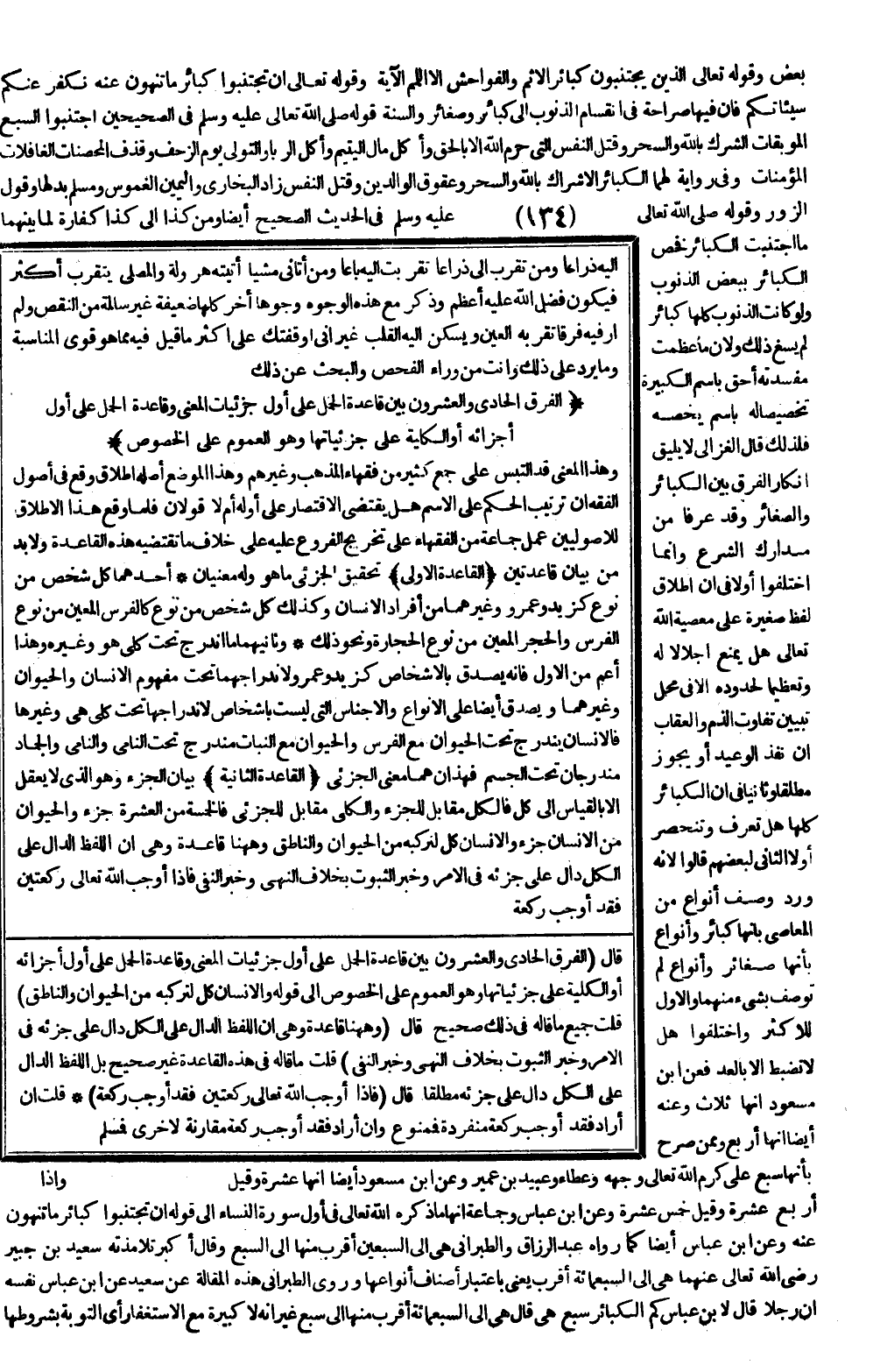وَقَوْلُهُ - صَلَّى اللَّهُ تَعَالَى عَلَيْهِ وَسَلَّمَ - فِي الْحَدِيثِ الصَّحِيحِ أَيْضًا وَمِنْ كَذَا إلَى كَذَا كَفَّارَةٌ لِمَا بَيْنَهُمَا مَا اُجْتُنِبَتْ الْكَبَائِرُ فَخَصَّ الْكَبَائِرَ بِبَعْضِ الذُّنُوبِ وَلَوْ كَانَتْ الذُّنُوبُ كُلُّهَا كَبَائِرَ لَمْ يَسُغْ ذَلِكَ وَلِأَنَّ مَا عَظُمَتْ مَفْسَدَتُهُ أَحَقُّ بِاسْمِ الْكَبِيرَةِ تَخْصِيصًا لَهُ بِاسْمٍ يَخُصُّهُ فَلِذَلِكَ قَالَ الْغَزَالِيُّ لَا يَلِيقُ إنْكَارُ الْفَرْقِ بَيْنَ الْكَبَائِرِ وَالصَّغَائِرِ وَقَدْ عُرِفَا مِنْ مَدَارِكِ الشَّرْعِ وَإِنَّمَا اخْتَلَفُوا أَوَّلًا فِي أَنَّ إطْلَاقَ لَفْظِ صَغِيرَةٍ عَلَى مَعْصِيَةِ اللَّهِ تَعَالَى هَلْ يَمْنَعُ إجْلَالًا لَهُ وَتَعْظِيمًا لِحُدُودِهِ إلَّا فِي مَحَلِّ تَبْيِينِ تَفَاوُتِ الذَّمِّ وَالْعِقَابِ إنْ نَفَذَ الْوَعِيدُ أَوْ يَجُوزُ مُطْلَقًا وَثَانِيًا فِي أَنَّ الْكَبَائِرَ كُلَّهَا هَلْ تُعْرَفُ وَتَنْحَصِرُ أَوْ لَا الثَّانِي لِبَعْضِهِمْ قَالُوا: لِأَنَّهُ وَرَدَ وَصْفُ أَنْوَاعٍ مِنْ الْمَعَاصِي بِأَنَّهَا كَبَائِرُ وَأَنْوَاعٍ بِأَنَّهَا صَغَائِرُ وَأَنْوَاعٍ لَمْ تُوصَفْ بِشَيْءٍ مِنْهُمَا وَالْأَوَّلُ لِلْأَكْثَرِ وَاخْتَلَفُوا هَلْ لَا تَنْضَبِطُ إلَّا بِالْعَدِّ فَعَنْ ابْنِ مَسْعُودٍ أَنَّهَا ثَلَاثٌ.