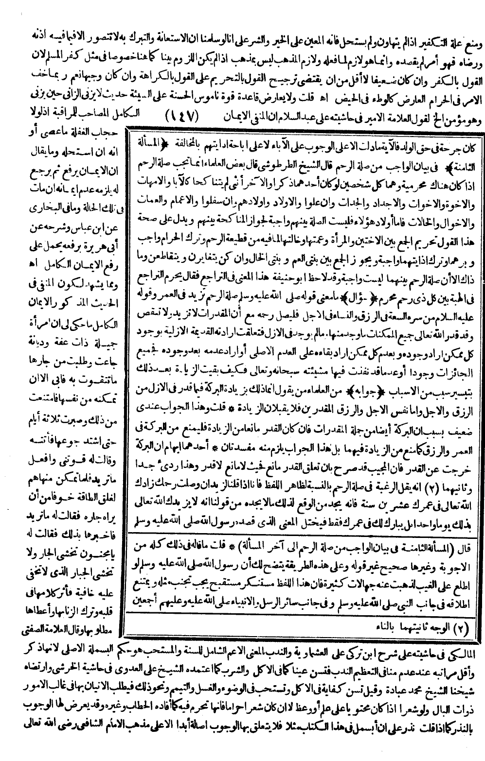ـــــــــــــــــــــــــــــSقَالَ: (الْمَسْأَلَةُ الثَّامِنَةُ فِي بَيَانِ الْوَاجِبِ مِنْ صِلَةِ الرَّحِمِ إلَى آخِرِ الْمَسْأَلَةِ) قُلْتُ: مَا قَالَهُ فِي ذَلِكَ كُلَّهُ مِنْ الْأَجْوِبَةِ وَغَيْرِهَا صَحِيحٌ غَيْرَ قَوْلِهِ وَعَلَى هَذِهِ الطَّرِيقَةِ يَتَّضِحُ لَك أَنَّ رَسُولَ اللَّهِ - صَلَّى اللَّهُ عَلَيْهِ وَسَلَّمَ - لَوْ اطَّلَعَ عَلَى الْغَيْبِ لَذَهَبَتْ عَنْهُ جَهَالَاتٌ كَثِيرَةٌ فَإِنَّ هَذَا اللَّفْظَ مُسْتَنْكَرٌ مُسْتَقْبَحٌ يَجِبُ تَجَنُّبُ مِثْلِهِ وَيَمْتَنِعُ إطْلَاقُهُ فِي جَانِبِ النَّبِيِّ - صَلَّى اللَّهُ عَلَيْهِ وَسَلَّمَ - وَفِي جَانِبِ سَائِرِ الرُّسُلِ وَالْأَنْبِيَاءِ صَلَّى اللَّهُ عَلَيْهِ وَعَلَيْهِمْ أَجْمَعِينَ.
