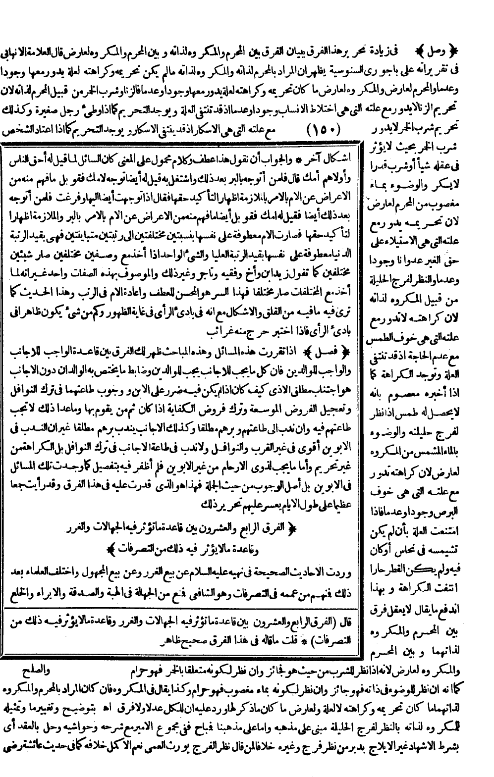 ـــــــــــــــــــــــــــــQوَصْلٌ) فِي زِيَادَةِ تَحْرِيرِ هَذَا الْفَرْقِ بِبَيَانِ الْفَرْقِ بَيْنَ الْمُحَرَّمِ وَالْمَكْرُوهِ لِذَاتِهِ وَبَيْنَ الْمُحَرَّمِ وَالْمَكْرُوهِ لِعَارِضٍ قَالَ الْعَلَّامَةُ الأنبابي فِي تَقْرِيرَاتِهِ عَلَى بَاجُورِيّ السُّنُوسِيَّةِ: يَظْهَرُ أَنَّ الْمُرَادَ بِالْمُحَرَّمِ لِذَاتِهِ وَالْمَكْرُوهِ لِذَاتِهِ مَا لَمْ يَكُنْ تَحْرِيمُهُ وَكَرَاهَتُهُ لِعِلَّةٍ يَدُورُ مَعَهَا وُجُودًا وَعَدَمًا وَالْمُحَرَّمِ لِعَارِضٍ وَالْمَكْرُوهِ لِعَارِضٍ مَا كَانَ تَحْرِيمُهُ وَكَرَاهَتُهُ لِعِلَّةٍ يَدُورُ مَعَهَا وُجُودًا وَعَدَمًا فَالزِّنَا وَشُرْبُ الْخَمْرِ مِنْ قَبِيلِ الْمُحَرَّمِ لِذَاتِهِ لِأَنَّ تَحْرِيمَ الزِّنَا لَا يَدُورُ مَعَ عِلَّتِهِ الَّتِي هِيَ اخْتِلَاطُ الْأَنْسَابِ وُجُودًا وَعَدَمًا إذْ قَدْ تَنْتِفِي الْعِلَّةُ وَيُوجَدُ التَّحْرِيمُ كَمَا إذَا وَطِئَ رَجُلٌ صَغِيرَةً.