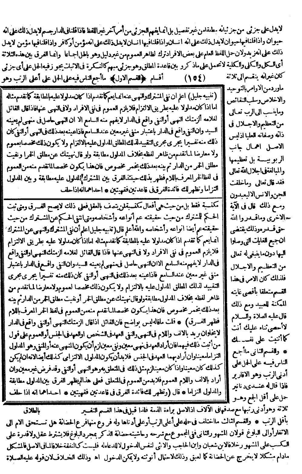 وَالْإِجْلَالِ فِي ذَاتِهِ وَصِفَاتِهِ الْعُلْيَا إذْ لَيْسَ الْأَصْلُ إهْمَالَ جَانِبِ الرُّبُوبِيَّةِ بَلْ تَعْظِيمَهَا وَالْمُبَالَغَةُ فِي إجْلَالِ اللَّهِ تَعَالَى فَقَدْ قَالَ اللَّهُ تَعَالَى {وَمَا خَلَقْتُ الْجِنَّ وَالإِنْسَ إِلا لِيَعْبُدُونِ} [الذاريات: 56] وَمَعَ ذَلِكَ قَالَ فِي الْآيَةِ الْأُخْرَى {وَمَا قَدَرُوا اللَّهَ حَقَّ قَدْرِهِ} [الأنعام: 91] وَذَلِكَ يَقْتَضِي أَنَّ جَمِيعَ الْغَايَاتِ الَّتِي وَصَلُوا إلَيْهَا دُونَ مَا يَنْبَغِي لَهُ تَعَالَى مِنْ التَّعْظِيمِ وَالْإِجْلَالِ فَلِذَلِكَ كَانَ الْأَمْرُ فِي هَذَا الْقِسْمِ مُتَعَلِّقًا بِأَقْصَى غَايَتِهِ الْمُمْكِنَةِ لِلْعَبِيدِ وَمَعَ ذَلِكَ قَالَ: - عَلَيْهِ الصَّلَاةُ وَالسَّلَامُ - «لَا أُحْصِي ثَنَاءً عَلَيْك أَنْتَ كَمَا أَثْنَيْت عَلَى نَفْسِك» وَالْقِسْمُ الثَّانِي مَا أَجْمَعَ النَّاسُ فِيهِ عَلَى الْحَمْلِ عَلَى أَدْنَى الرُّتَبِ وَهُوَ الْأَقَارِيرُ فَإِذَا قَالَ: لَهُ عِنْدِي دَنَانِيرُ حُمِلَ عَلَى أَقَلِّ الْجَمْعِ وَهُوَ ثَلَاثَةٌ وَهُوَ أَدْنَى رُتَبِهَا مَعَ صِدْقِهَا فِي الْآلَافِ إذْ الْأَصْلُ بَرَاءَةُ الذِّمَّةِ فَلِذَا قُبِلَ فِي هَذَا الْقِسْمِ التَّفْسِيرُ بِأَقَلِّ الرُّتَبِ الْقِسْمُ الثَّالِثُ مَا اُخْتُلِفَ فِي حَمْلِهِ عَلَى أَعْلَى الرُّتَبِ أَوْ عَلَى أَدْنَاهَا وَلَهُ فُرُوعٌ مِنْهَا فَرْعُ الْحَضَانَةِ هَلْ تَسْتَحِقُّ الْأُمُّ إلَى الْإِثْغَارِ أَوْ إلَى الْبُلُوغِ قَوْلَانِ الْمَشْهُورُ الثَّانِي فَفِي الْمَجْمُوعِ مَعَ شَرْحِهِ وَحَاشِيَتِهِ حَضَانَةُ الذَّكَرِ بِمُجَرَّدِ الْبُلُوغِ فَلَا يُشْتَرَطُ عَقْلٌ وَلَا قُدْرَةٌ عَلَى الْكَسْبِ عَلَى الْمَشْهُورِ خِلَافًا لِابْنِ شَعْبَانَ وَابْنِ الْحَاجِبِ وَالْأُنْثَى لِنَفْسِ الدُّخُولِ لَا لِلدُّعَاءِ لَهُ فَلَيْسَتْ كَالنَّفَقَةِ خِلَافًا لِمَا فِي الْأَصْلِ فَالْمُشْكِلُ مَا دَامَ مُشْكِلًا لَا يَخْرُجُ عَنْ الْحَضَانَةِ كَمَا لِعَبِقِ وَذَلِكَ لِاحْتِمَالِ أُنُوثَتِهِ وَلَا يُمْكِنُ الدُّخُولُ. اهـ.