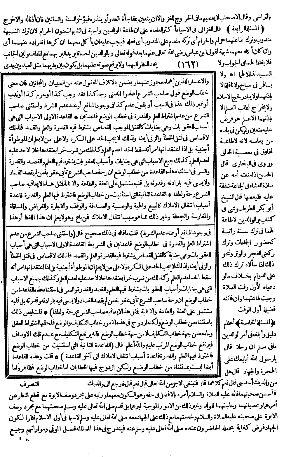 الْقَاعِدَةُ الْأُولَى الْأَسْبَابُ الَّتِي هِيَ أَسْبَابٌ لِلْعُقُوبَاتِ وَهِيَ جِنَايَاتٌ كَالْقَتْلِ الْمُوجِبِ لِلْقِصَاصِ يُشْتَرَطُ فِيهِ الْقُدْرَةُ وَالْعِلْمُ وَالْقَصْدُ فَلِذَلِكَ لَا قِصَاصَ فِي قَتْلِ الْخَطَأِ وَالزَّانِي أَيْضًا وَلِذَلِكَ لَا يَجِبُ الْحَدُّ عَلَى الْمُكْرَهِ وَلَا عَلَى مَنْ لَا يَعْلَمُ أَنَّ الْمَوْطُوءَةَ أَجْنَبِيَّةٌ بَلْ إذَا اعْتَقَدَ أَنَّهَا امْرَأَتُهُ سَقَطَ الْحَدُّ لِعَدَمِ الْعِلْمِ وَكَذَلِكَ مَنْ شَرِبَ خَمْرًا يَعْتَقِدُهَا خَلًّا لَا حَدَّ عَلَيْهِ لِعَدَمِ الْعِلْمِ وَكَذَلِكَ جَمِيعُ الْأَسْبَابِ الَّتِي هِيَ جِنَايَاتٌ وَأَسْبَابٌ لِلْعُقُوبَاتِ يُشْتَرَطُ فِيهَا الْعِلْمُ وَالْقَصْدُ وَالْقُدْرَةُ وَالسِّرُّ فِي اسْتِثْنَاءِ هَذِهِ الْقَاعِدَةِ مِنْ خِطَابِ الْوَضْعِ أَنَّ رَحْمَةَ صَاحِبِ الشَّرْعِ تَأْبَى عُقُوبَةَ مَنْ لَمْ يَقْصِدْ الْفَسَادَ وَلَا يَسْعَى فِيهِ بِإِرَادَتِهِ وَقُدْرَتِهِ بَلْ قَلْبُهُ مُشْتَمِلٌ عَلَى الْعِفَّةِ وَالطَّاعَةِ وَالْإِنَابَةِ فَمِثْلُ هَذَا لَا يُعَاقِبُهُ صَاحِبُ الشَّرْعِ رَحْمَةً وَلُطْفًا.