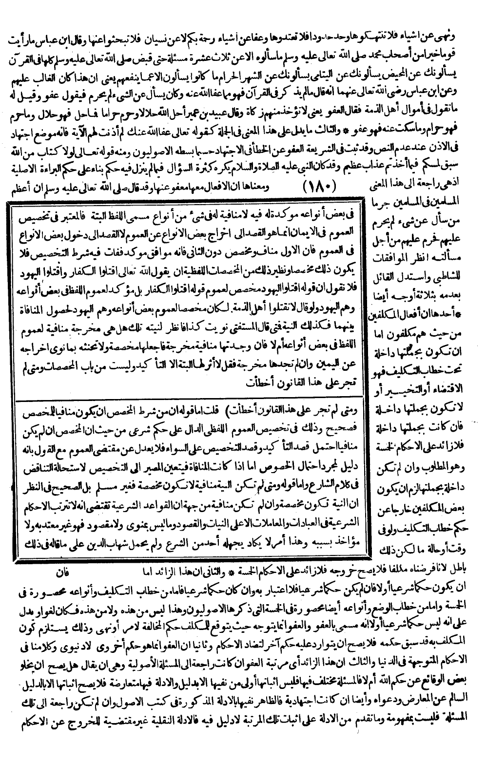 وَالثَّالِثُ مَا يَدُلُّ عَلَى هَذَا الْمَعْنَى فِي الْجُمْلَةِ كَقَوْلِهِ تَعَالَى {عَفَا اللَّهُ عَنْكَ لِمَ أَذِنْتَ لَهُمْ} [التوبة: 43] الْآيَةَ فَإِنَّهُ مَوْضِعُ اجْتِهَادٍ فِي الْإِذْنِ عِنْدَ عَدَمِ النَّصِّ وَقَدْ ثَبَتَ فِي الشَّرِيعَةِ الْعَفْوُ عَنْ الْخَطَأِ فِي الِاجْتِهَادِ حَسْبَمَا بَسَطَهُ الْأُصُولِيُّونَ وَمِنْهُ قَوْله تَعَالَى {لَوْلا كِتَابٌ مِنَ اللَّهِ سَبَقَ لَمَسَّكُمْ فِيمَا أَخَذْتُمْ عَذَابٌ عَظِيمٌ} [الأنفال: 68] «وَقَدْ كَانَ النَّبِيُّ - عَلَيْهِ الصَّلَاةُ وَالسَّلَامُ - يَكْرَهُ كَثْرَةَ السُّؤَالِ فِيمَا لَمْ يَنْزِلْ فِيهِ حُكْمٌ» بِنَاءً عَلَى حُكْمِ الْبَرَاءَةِ الْأَصْلِيَّةِ إذْ هِيَ رَاجِعَةٌ إلَى هَذَا الْمَعْنَى وَمَعْنَاهَا أَنَّ الْأَفْعَالَ مَعَهَا مَعْفُوٌّ عَنْهَا وَقَدْ قَالَ - صَلَّى اللَّهُ تَعَالَى عَلَيْهِ وَسَلَّمَ - «إنَّ أَعْظَمَ الْمُسْلِمِينَ فِي الْمُسْلِمِينَ جُرْمًا مَنْ سَأَلَ عَنْ شَيْءٍ لَمْ يَحْرُمْ عَلَيْهِمْ فَحَرُمَ عَلَيْهِمْ مِنْ أَجْلِ مَسْأَلَتِهِ» اُنْظُرْ الْمُوَافَقَاتِ لِلشَّاطِبِيِّ وَاَسْتَدَلَّ الْقَائِلُ بِعَدَمِهِ بِثَلَاثَةِ أَوْجُهٍ أَيْضًا