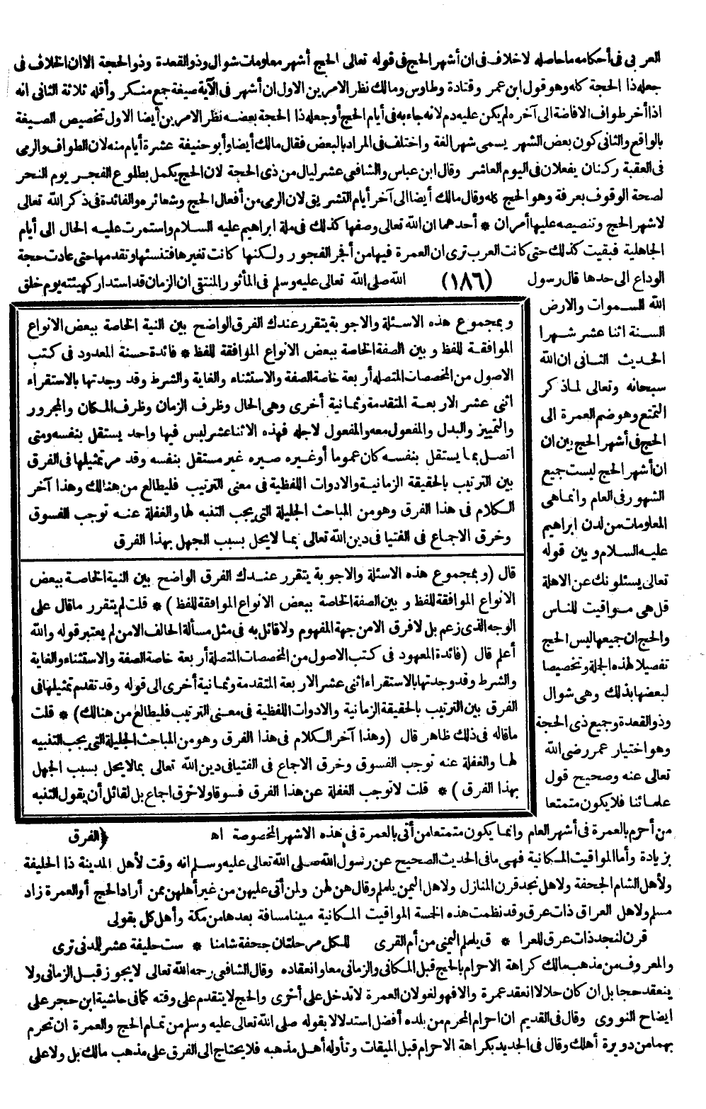 ـــــــــــــــــــــــــــــQابْنُ الْعَرَبِيِّ فِي أَحْكَامِهِ مَا حَاصِلُهُ لَا خِلَافَ فِي أَنَّ أَشْهُرَ الْحَجِّ فِي قَوْله تَعَالَى {الْحَجُّ أَشْهُرٌ مَعْلُومَاتٌ} [البقرة: 197] شَوَّالٌ وَذُو الْقَعْدَةِ وَذُو الْحِجَّةِ إلَّا أَنَّ الْخِلَافَ فِي جَعْلِهِ ذَا الْحِجَّةِ كُلَّهُ وَهُوَ قَوْلُ ابْنِ عُمَرَ وَقَتَادَةَ وَطَاوُسٍ وَمَالِكٍ نَظَرَ الْأَمْرَيْنِ الْأَوَّلُ أَنَّ أَشْهُرٌ فِي الْآيَةِ صِيغَةُ جَمْعٍ مُنَكَّرٍ وَأَقَلُّهُ ثَلَاثَةٌ الثَّانِي أَنَّهُ إذَا أَخَّرَ طَوَافَ الْإِفَاضَةِ إلَى آخِرِهِ لَمْ يَكُنْ عَلَيْهِ دَمٌ لِأَنَّهُ جَاءَ بِهِ فِي أَيَّامِ الْحَجِّ أَوْ جَعَلَهُ ذَا الْحِجَّةِ بَعْضُهُ نَظَرَ الْأَمْرَيْنِ أَيْضًا الْأَوَّلُ تَخْصِيصُ الصِّيغَةِ بِالْوَاقِعِ وَالثَّانِي كَوْنُ بَعْضِ الشَّهْرِ يُسَمَّى شَهْرًا لُغَةً وَاخْتُلِفَ فِي الْمُرَادِ بِالْبَعْضِ فَقَالَ مَالِكٌ أَيْضًا وَأَبُو حَنِيفَةَ عَشَرَةُ أَيَّامٍ مِنْهُ لِأَنَّ الطَّوَافَ وَالرَّمْيَ فِي الْعَقَبَةِ رُكْنَانِ يُفْعَلَانِ فِي الْيَوْمِ الْعَاشِرِ وَقَالَ ابْنُ عَبَّاسٍ وَالشَّافِعِيُّ عَشْرُ لَيَالٍ مِنْ ذِي الْحِجَّةِ لِأَنَّ الْحَجَّ يَكْمُلُ بِطُلُوعِ الْفَجْرِ يَوْمَ النَّحْرِ لِصِحَّةِ الْوُقُوفِ بِعَرَفَةَ وَهُوَ الْحَجُّ كُلُّهُ وَقَالَ مَالِكٌ أَيْضًا إلَى آخِرِ أَيَّامِ التَّشْرِيقِ لِأَنَّ الرَّمْيَ مِنْ أَفْعَالِ الْحَجِّ وَشَعَائِرِهِ وَالْفَائِدَةِ فِي ذِكْرِ اللَّهِ تَعَالَى لِأَشْهُرِ الْحَجِّ وَتَنْصِيصِهِ عَلَيْهَا أَمْرَانِ