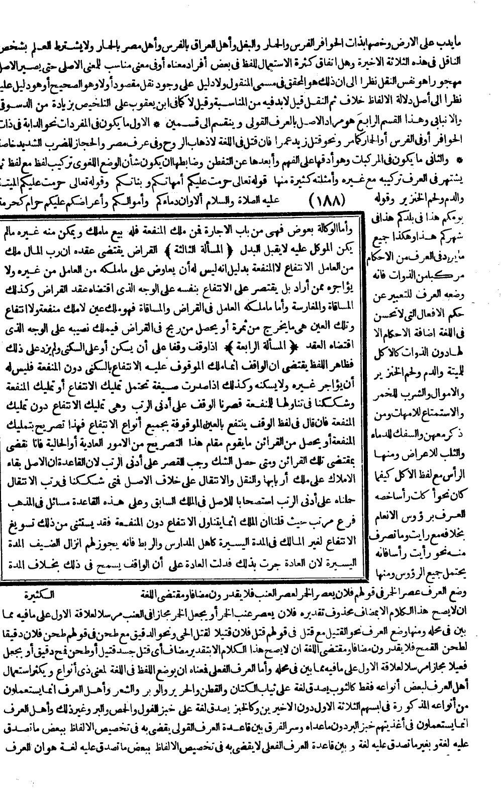 وَالثَّانِي مَا يَكُونُ فِي الْمُرَكَّبَاتِ وَهُوَ أَدَقُّهَا عَلَى الْفَهْمِ وَأَبْعَدُهَا عَنْ التَّفَطُّنِ وَضَابِطُهَا أَنْ يَكُونَ شَأْنُ الْوَضْعِ اللُّغَوِيِّ تَرْكِيبَ لَفْظٍ مَعَ لَفْظٍ ثُمَّ يَشْتَهِرُ فِي الْعُرْفِ تَرْكِيبُهُ مَعَ غَيْرِهِ وَأَمْثِلَتُهُ كَثِيرَةٌ مِنْهَا قَوْله تَعَالَى {حُرِّمَتْ عَلَيْكُمْ أُمَّهَاتُكُمْ وَبَنَاتُكُمْ} [النساء: 23] وقَوْله تَعَالَى {حُرِّمَتْ عَلَيْكُمُ الْمَيْتَةُ وَالدَّمُ وَلَحْمُ الْخِنْزِيرِ} [المائدة: 3] وَقَوْلُهُ - عَلَيْهِ الصَّلَاةُ وَالسَّلَامُ - «أَلَا وَإِنَّ دِمَاءَكُمْ وَأَمْوَالَكُمْ وَأَعْرَاضَكُمْ عَلَيْكُمْ حَرَامٌ كَحُرْمَةِ يَوْمِكُمْ هَذَا فِي بَلَدِكُمْ هَذَا فِي شَهْرِكُمْ هَذَا» وَهَكَذَا جَمِيعُ مَا يَرِدُ فِي الْعُرْفِ مِنْ الْأَحْكَامِ مُرَكَّبًا مِنْ الذَّوَاتِ فَإِنَّهُ وَضَعَهُ الْعُرْفُ لِلتَّعْبِيرِ عَنْ حُكْمِ الْأَفْعَالِ الَّتِي لَا تَحْسُنُ فِي اللُّغَةِ إضَافَةُ الْأَحْكَامِ إلَّا لَهَا دُونَ الذَّوَاتِ كَالْأَكْلِ لِلْمَيْتَةِ وَالدَّمِ وَلَحْمِ الْخِنْزِيرِ وَالْأَمْوَالِ وَالشُّرْبِ لِلْخَمْرِ وَالِاسْتِمْتَاعِ لِلْأُمَّهَاتِ وَمَنْ ذُكِرَ مَعَهُنَّ وَالسَّفْكِ لِلدِّمَاءِ وَالثَّلْبِ لِلْأَعْرَاضِ وَمِنْهَا الرَّأْسُ مَعَ لَفْظِ الْأَكْلِ كَيْفَمَا كَانَ نَحْوَ أَكَلْت رَأْسًا خَصَّهُ الْعُرْفُ بِرُءُوسِ الْأَنْعَامِ بِخِلَافِهِ مَعَ رَأَيْت وَمَا تَصَرَّفَ مِنْهُ نَحْوَ رَأَيْت رَأْسًا فَإِنَّهُ يَحْتَمِلُ جَمِيعَ الرُّءُوسِ وَمِنْهَا وَضْعُ الْعُرْفِ عَصْرَ الْخَمْرِ فِي قَوْلِهِمْ فُلَانٌ يَعْصِرُ الْخَمْرَ لِعَصْرِ الْعِنَبِ فَلَا يُقَدِّرُونَ مُضَافًا وَمُقْتَضَى اللُّغَةِ أَنْ لَا يَصِحَّ هَذَا الْكَلَامُ إلَّا بِمُضَافٍ مَحْذُوفٍ تَقْدِيرُهُ فُلَانٌ يَعْصِرُ عِنَبَ الْخَمْرِ أَوْ يُجْعَلُ الْخَمْرُ مَجَازًا فِي الْعِنَبِ مُرْسَلًا لِعَلَاقَةِ الْأَوَّلِ عَلَى مَا فِيهِ مِمَّا بُيِّنَ فِي مَحَلِّهِ.