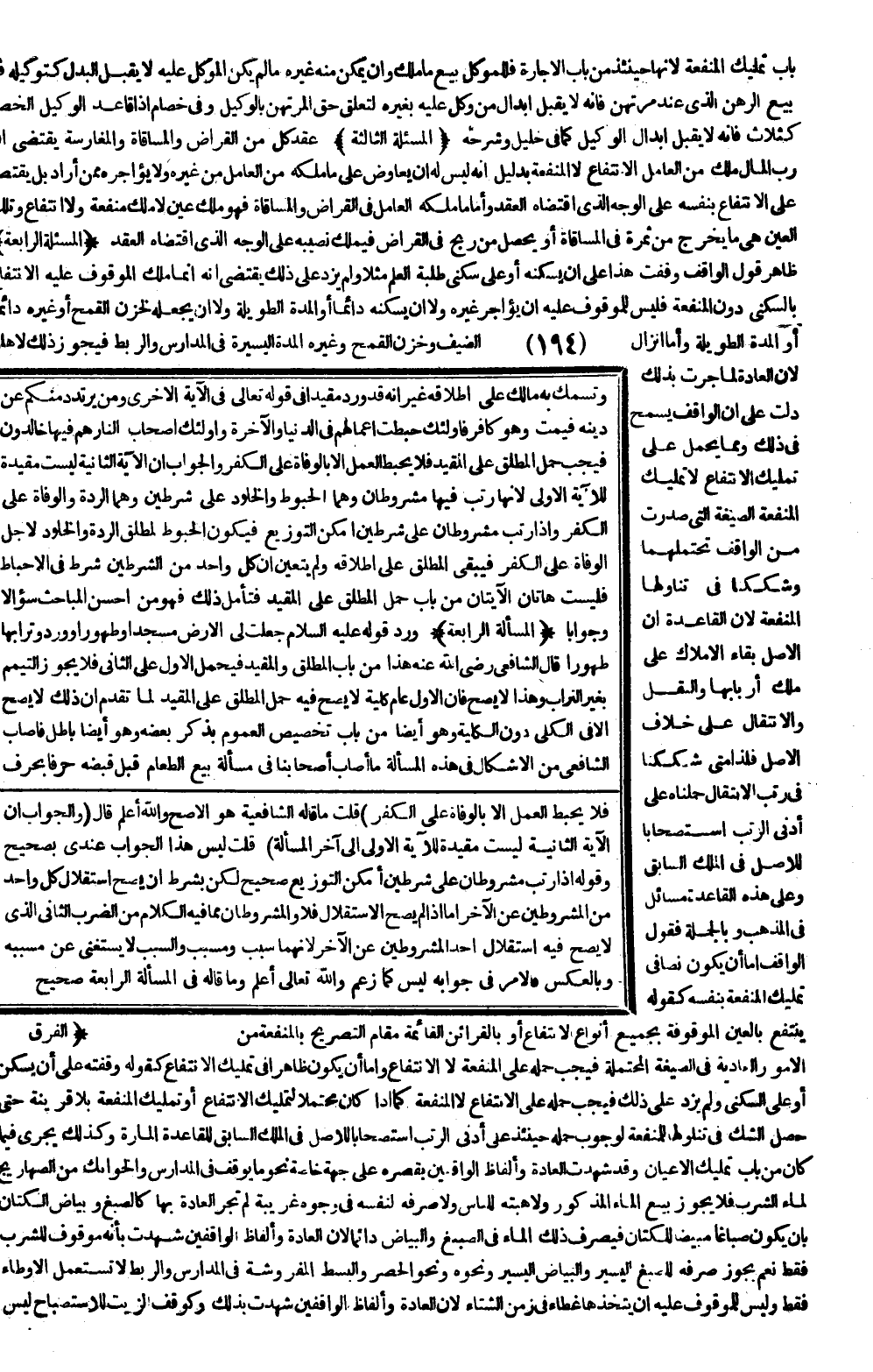 وَإِمَّا أَنْ يَكُونَ ظَاهِرًا فِي تَمْلِيكِ الِانْتِفَاعِ كَقَوْلِهِ وَقَفْته عَلَى أَنْ يُسْكَنَ أَوْ عَلَى السُّكْنَى وَلَمْ يَزِدْ عَلَى ذَلِكَ فَيَجِبُ حَمْلُهُ عَلَى الِانْتِفَاعِ لَا الْمَنْفَعَةِ كَمَا إذَا كَانَ مُحْتَمِلًا لِتَمْلِيكِ الِانْتِفَاعِ أَوْ تَمْلِيكِ الْمَنْفَعَةِ بِلَا قَرِينَةٍ حَتَّى حَصَلَ الشَّكُّ فِي تَنَاوُلِهَا لِلْمَنْفَعَةِ لِوُجُوبِ حَمْلِهِ حِينَئِذٍ عَلَى أَدْنَى الرُّتَبِ اسْتِصْحَابًا لِلْأَصْلِ فِي الْمِلْكِ السَّابِقِ لِلْقَاعِدَةِ الْمَارَّةِ وَكَذَلِكَ يَجْرِي فِيمَا كَانَ مِنْ بَابِ تَمْلِيكِ الْأَعْيَانِ وَقَدْ شَهِدَتْ الْعَادَةُ وَأَلْفَاظُ الْوَاقِفِينَ بِقَصْرِهِ عَلَى جِهَةٍ خَاصَّةٍ نَحْوَ مَا يُوقَفُ فِي الْمَدَارِسِ وَالْخَوَانِكِ مِنْ الصَّهَارِيجِ لِمَاءِ الشُّرْبِ فَلَا يَجُوزُ بَيْعُ الْمَاءِ الْمَذْكُورِ وَلَا هِبَتُهُ لِلنَّاسِ وَلَا صَرْفُهُ لِنَفْسِهِ فِي وُجُوهٍ غَرِيبَةٍ لَمْ تَجْرِ الْعَادَةُ بِهَا كَالصَّبْغِ وَبَيَاضِ الْكَتَّانِ بِأَنْ يَكُونَ صَبَّاغًا مُبَيِّضًا لِلْكَتَّانِ فَيُصْرَفُ ذَلِكَ الْمَاءُ فِي الصَّبْغِ وَالْبَيَاضِ دَائِمًا لِأَنَّ الْعَادَةَ وَأَلْفَاظَ الْوَاقِفِينَ شَهِدَتْ بِأَنَّهُ مَوْقُوفٌ لِلشُّرْبِ فَقَطْ نَعَمْ يَجُوزُ صَرْفُهُ لِلصَّبْغِ الْيَسِيرِ وَالْبَيَاضِ الْيَسِيرِ وَنَحْوِهِ وَنَحْوَ الْحُصْرِ وَالْبُسُطِ الْمَفْرُوشَةِ فِي الْمَدَارِسِ وَالرُّبُطُ لَا تَسْتَعْمِلُ الْأَوْطَاءَ فَقَطْ وَلَيْسَ لِلْمَوْقُوفِ عَلَيْهِ أَنْ يَتَّخِذَهَا غِطَاءً فِي زَمَنِ الشِّتَاءِ لِأَنَّ الْعَادَةَ وَأَلْفَاظَ الْوَاقِفِينَ شَهِدَتْ بِذَلِكَ وَكَوَقْفِ الزَّيْتِ لِلِاسْتِصْبَاحِ لَيْسَ