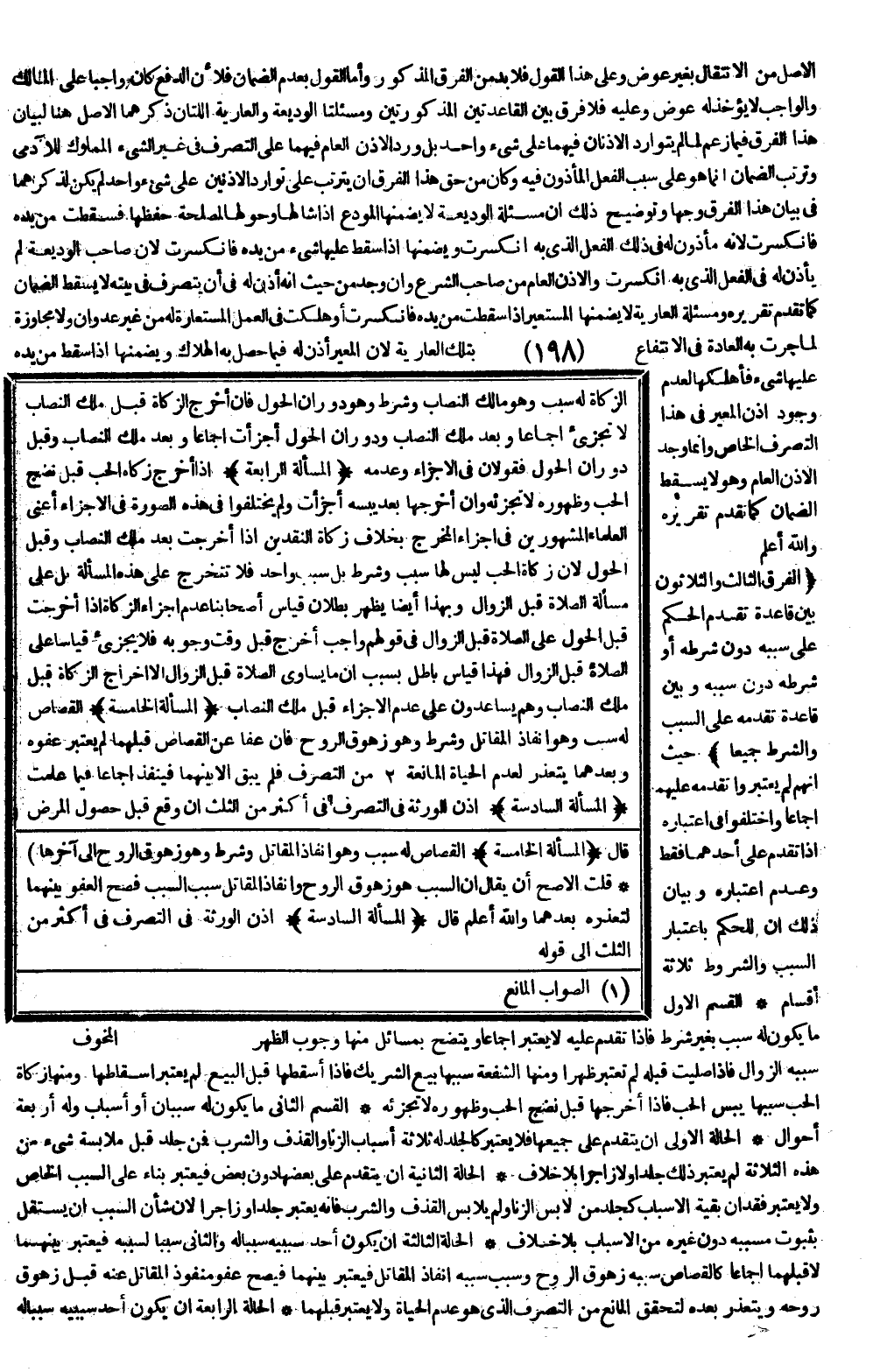 الزَّكَاةِ لَهُ سَبَبٌ وَهُوَ مَالِكُ النِّصَابِ وَشَرْطٌ وَهُوَ دَوَرَانُ الْحَوْلِ فَإِنْ أَخْرَجَ الزَّكَاةَ قَبْلَ مِلْكِ النِّصَابِ لَا تُجْزِئُ إجْمَاعًا وَبَعْدَ مِلْكِ النِّصَابِ وَدَوَرَانِ الْحَوْلِ أَجْزَأَتْ إجْمَاعًا وَبَعْدَ مِلْكِ النِّصَابِ وَقَبْلَ دَوَرَانِ الْحَوْلِ فَقَوْلَانِ فِي الْإِجْزَاءِ وَعَدَمِهِ (الْمَسْأَلَةُ الرَّابِعَةُ)