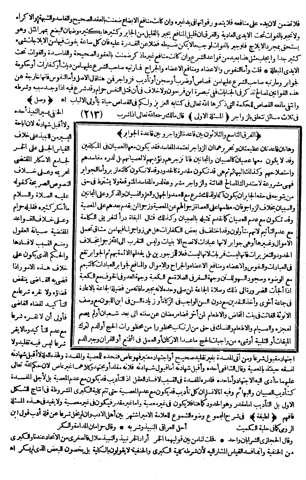قُلْت وَأَمَّا النُّفُوسُ وَالْأَعْضَاءُ وَمَنَافِعُ الْأَعْضَاءِ وَالْجِرَاحِ فَمَا رَتَّبَهُ صَاحِبُ الشَّرْعِ عَلَيْهَا مِنْ دِيَاتٍ أَوْ كَفَّارَاتٍ أَوْ حُكُومَةٍ فَجَوَابِرُ وَمَا رَتَّبَهُ صَاحِبُ الشَّرْعِ عَلَيْهَا مِنْ قِصَاصٍ أَوْ ضَرْبٍ أَوْ سِجْنٍ أَوْ تَأْدِيبٍ فَزَوَاجِرُ فَمِنْ هُنَا قَالَ الْأَصْلُ وَأَمَّا النُّفُوسُ فَإِنَّهَا خَارِجَةٌ عَنْ هَذِهِ الْقَوَانِينِ لِمَصَالِحَ تُذْكَرُ فِي الْجِنَايَاتِ فَفِي تَبْصِرَةِ ابْنِ فَرْحُونٍ وَلَا خِلَافَ فِي أَنَّ قَتْلَ النَّفْسِ حَرَامٌ وَقَدْ شُرِعَ فِيهِ إذَا وُجِدَ سَبَبُهُ وَشَرْطُهُ وَانْتَفَى مَانِعُهُ الْقِصَاصُ لِلْحِكْمَةِ الَّتِي ذَكَرَهَا اللَّهُ تَعَالَى فِي كِتَابِهِ الْعَزِيزِ {وَلَكُمْ فِي الْقِصَاصِ حَيَاةٌ يَا أُولِي الأَلْبَابِ} [البقرة: 179] اهـ (وَصْلٌ) فِي ثَلَاثِ مَسَائِلَ تَتَعَلَّقُ بِالزَّوَاجِرِ (الْمَسْأَلَةُ الْأُولَى)