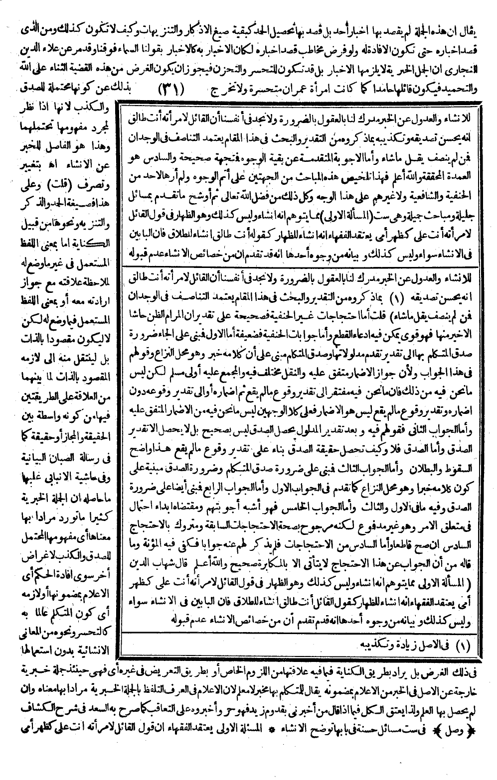 ـــــــــــــــــــــــــــــSلِلْإِنْشَاءِ وَالْعُدُولِ عَنْ الْخَبَرِ مُدْرَكٌ لَنَا بِالْعُقُولِ بِالضَّرُورَةِ وَلَا نَجِدُ فِي أَنْفُسِنَا أَنَّ الْقَائِلَ لِامْرَأَتِهِ أَنْتِ طَالِقٌ أَنَّهُ يَحْسُنُ تَصْدِيقُهُ بِمَا ذَكَرُوهُ مِنْ التَّقْدِيرِ. وَالْبَحْثُ فِي هَذَا الْمَقَامِ يَعْتَمِدُ التَّنَاصُفَ فِي الْوِجْدَانِ فَمَنْ لَمْ يُنْصِفْ يَقُلْ مَا شَاءَ)