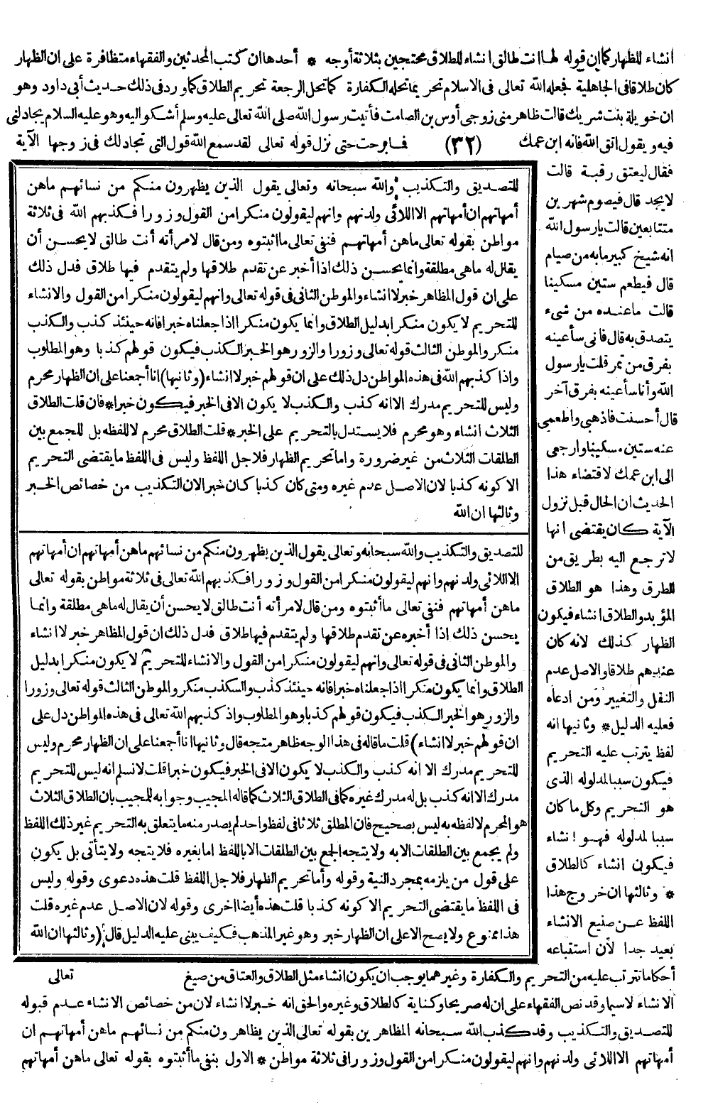 أَحَدُهَا: أَنَّ كُتُبَ الْمُحَدِّثِينَ وَالْفُقَهَاءِ مُتَظَافِرَةٌ عَلَى أَنَّ الظِّهَارَ كَانَ طَلَاقًا فِي الْجَاهِلِيَّةِ فَجَعَلَهُ اللَّهُ تَعَالَى فِي الْإِسْلَامِ تَحْرِيمًا تُحِلُّهُ الْكَفَّارَةُ كَمَا تُحِلُّ الرَّجْعَةُ تَحْرِيمَ الطَّلَاقِ كَمَا وَرَدَ فِي ذَلِكَ حَدِيثُ أَبِي دَاوُد، وَهُوَ أَنَّ «خُوَيْلَةَ بِنْتَ شَرِيكٍ قَالَتْ: ظَاهَرَ مِنِّي زَوْجِي أَوْسُ بْنُ الصَّامِتِ فَأَتَيْتُ رَسُولَ اللَّهِ - صَلَّى اللَّهُ تَعَالَى عَلَيْهِ وَسَلَّمَ - أَشْكُو إلَيْهِ وَهُوَ - عَلَيْهِ السَّلَامُ - يُجَادِلُنِي فِيهِ وَيَقُولُ اتَّقِ اللَّهَ فَإِنَّهُ ابْنُ عَمِّكِ فَمَا بَرِحْتُ حَتَّى نَزَلَ قَوْله تَعَالَى {قَدْ سَمِعَ اللَّهُ قَوْلَ الَّتِي تُجَادِلُكَ فِي زَوْجِهَا} [المجادلة: 1] الْآيَةَ فَقَالَ لِيُعْتِقْ رَقَبَةً قَالَتْ لَا يَجِدُ قَالَ فَيَصُومُ شَهْرَيْنِ مُتَتَابِعَيْنِ قَالَتْ يَا رَسُولَ اللَّهِ إنَّهُ شَيْخٌ كَبِيرٌ مَا بِهِ مِنْ صِيَامٍ قَالَ فَلْيُطْعِمْ سِتِّينَ مِسْكِينًا قَالَتْ مَا عِنْدَهُ مِنْ شَيْءٍ يَتَصَدَّقُ بِهِ قَالَ فَإِنِّي سَأُعِينُهُ بِفَرَقٍ مِنْ تَمْرٍ قُلْتُ يَا رَسُولَ اللَّهِ وَأَنَا سَأُعِينُهُ بِفَرَقٍ آخَرَ قَالَ أَحْسَنْتِ فَاذْهَبِي وَأَطْعِمِي عَنْهُ سِتِّينَ مِسْكِينًا وَارْجِعِي إلَى ابْنِ عَمِّكِ» لِاقْتِضَاءِ هَذَا الْحَدِيثِ أَنَّ الْحَالَ قَبْلَ نُزُولِ الْآيَةِ كَانَ يَقْتَضِي أَنَّهَا لَا تَرْجِعُ إلَيْهِ بِطَرِيقٍ مِنْ الطُّرُقِ، وَهَذَا هُوَ الطَّلَاقُ الْمُؤَبَّدُ، وَالطَّلَاقُ إنْشَاءٌ فَيَكُونُ الظِّهَارُ كَذَلِكَ؛ لِأَنَّهُ كَانَ عِنْدَهُمْ طَلَاقًا، وَالْأَصْلُ عَدَمُ النَّقْلِ وَالتَّغْيِيرِ وَمَنْ ادَّعَاهُ فَعَلَيْهِ الدَّلِيلُ