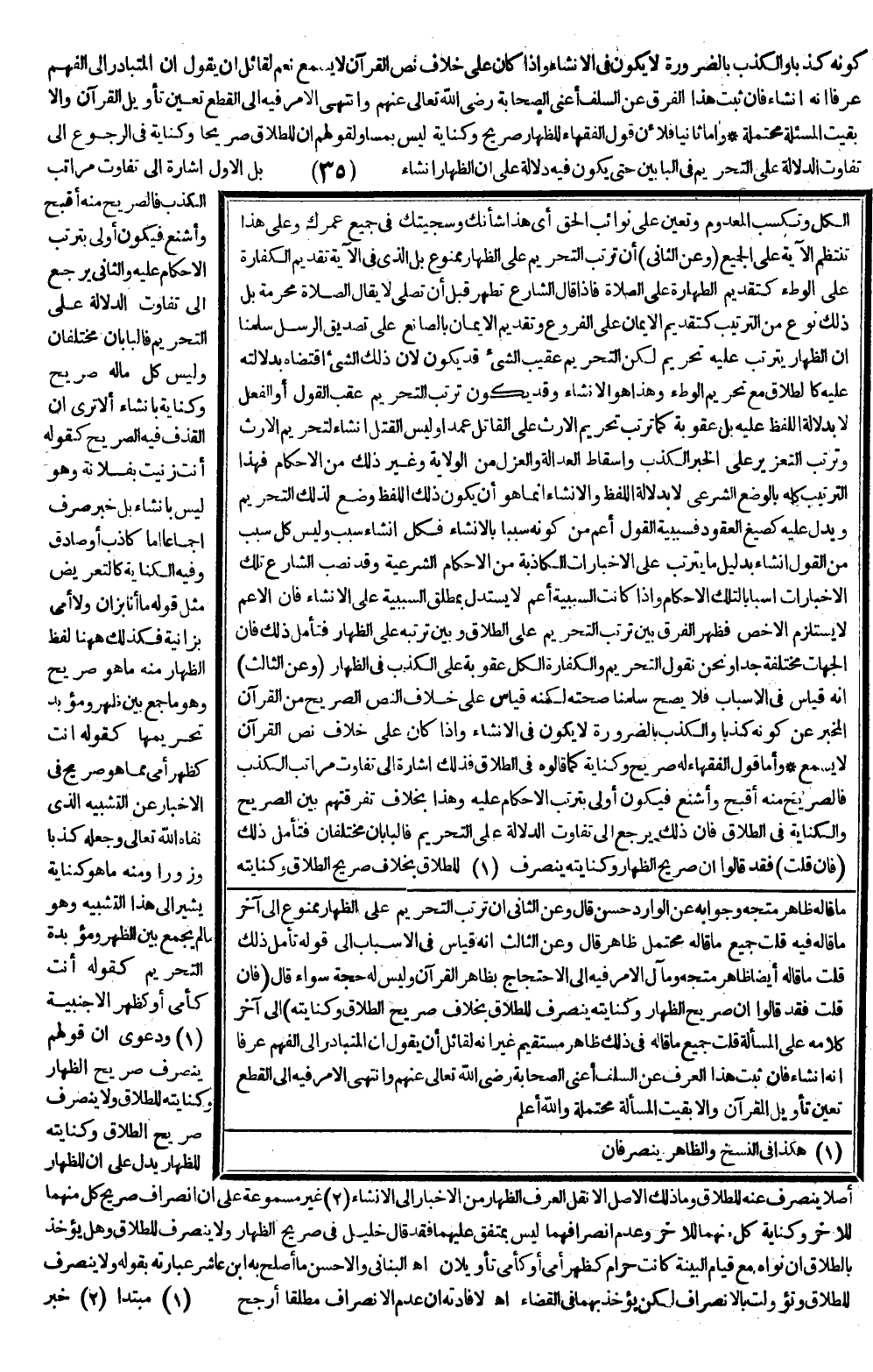 وَأَمَّا قَوْلُ الْفُقَهَاءِ لَهُ صَرِيحٌ وَكِنَايَةٌ كَمَا قَالُوهُ فِي الطَّلَاقِ فَذَلِكَ إشَارَةٌ إلَى تَفَاوُتِ مَرَاتِبِ الْكَذِبِ فَالصَّرِيحُ مِنْهُ أَقْبَحُ وَأَشْنَعُ فَيَكُونُ أَوْلَى بِتَرَتُّبِ الْأَحْكَامِ عَلَيْهِ، وَهَذَا بِخِلَافِ تَفْرِقَتِهِمْ بَيْنَ الصَّرِيحِ وَالْكِنَايَةِ فِي الطَّلَاقِ فَإِنَّ ذَلِكَ يَرْجِعُ إلَى تَفَاوُتِ الدَّلَالَةِ عَلَى التَّحْرِيمِ فَالْبَابَانِ مُخْتَلِفَانِ فَتَأَمَّلْ ذَلِكَ.