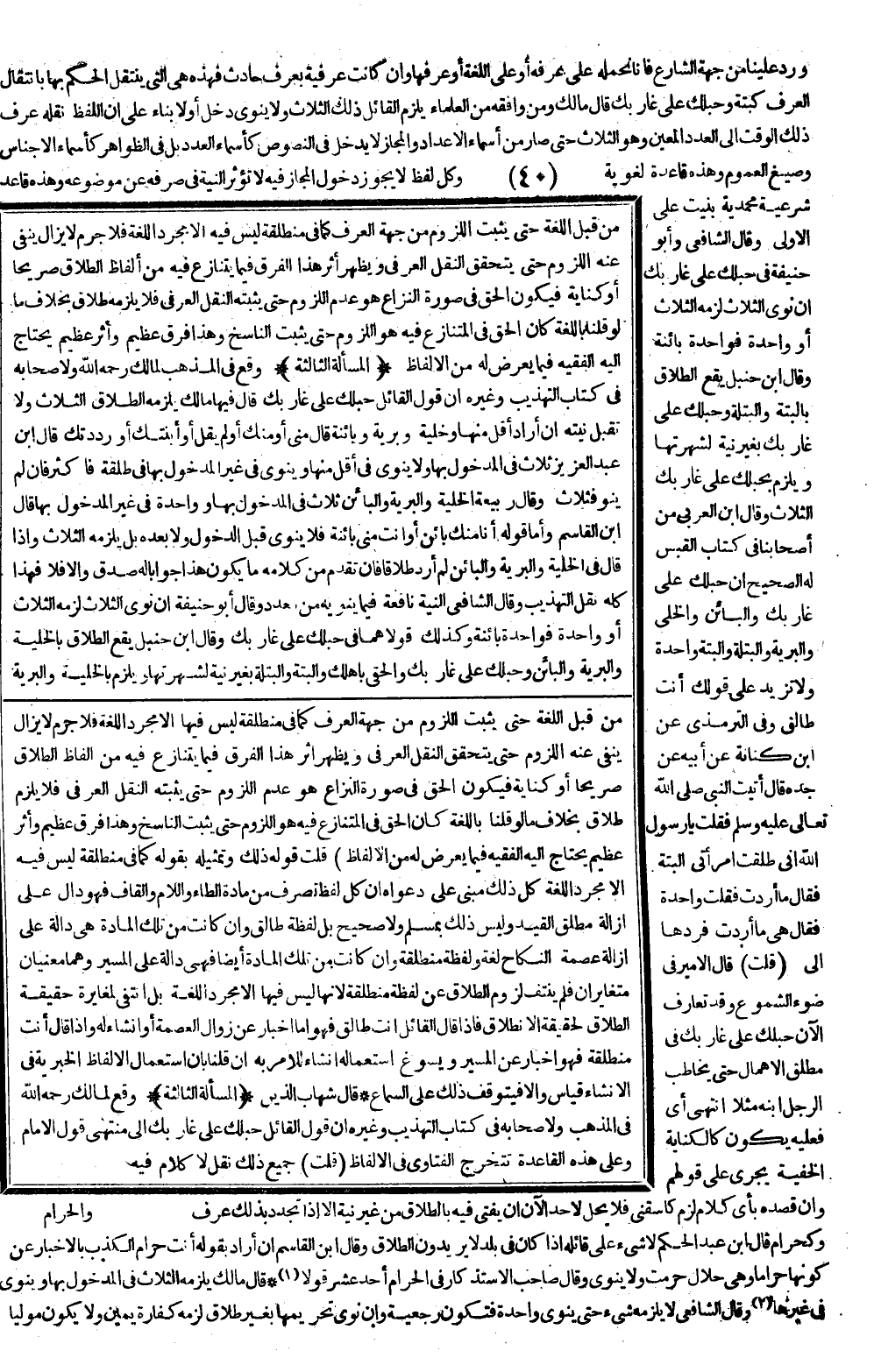 وَقَعَ لِمَالِكٍ - رَحِمَهُ اللَّهُ - فِي الْمَذْهَبِ وَلِأَصْحَابِهِ فِي كِتَابِ التَّهْذِيبِ وَغَيْرِهِ أَنَّ قَوْلَ الْقَائِلِ حَبْلُكِ عَلَى غَارِبِكِ إلَى مُنْتَهَى قَوْلِ الْإِمَامِ وَعَلَى هَذِهِ الْقَاعِدَةِ تَتَخَرَّجُ الْفَتَاوَى فِي الْأَلْفَاظِ.
