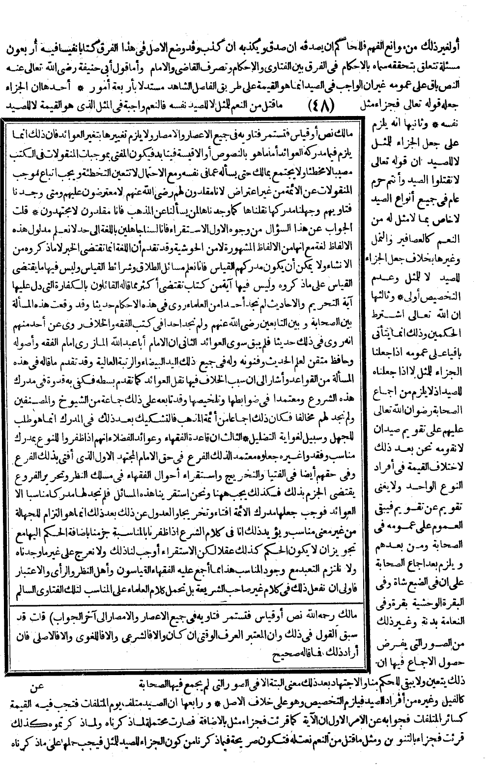 ـــــــــــــــــــــــــــــQأَوْ لِغَيْرِ ذَلِكَ مِنْ مَوَانِعِ الْفَهْمِ فَلِلْحَاكِمِ أَنْ يُصَدِّقَهُ إنْ صَدَقَ، وَيُكَذِّبَهُ إنْ كَذَبَ وَقَدْ وَضَعَ الْأَصْلُ فِي هَذَا الْفَرْقِ كِتَابًا نَفِيسًا فِيهِ أَرْبَعُونَ مَسْأَلَةً تَتَعَلَّقُ بِتَحَقُّقِهِ سَمَّاهُ بِالْأَحْكَامِ فِي الْفَرْقِ بَيْنَ الْفَتَاوَى وَالْأَحْكَامِ وَتَصَرُّفِ الْقَاضِي وَالْإِمَامِ، وَأَمَّا قَوْلُ أَبِي حَنِيفَةَ - رَضِيَ اللَّهُ تَعَالَى عَنْهُ - النَّصُّ بَاقٍ عَلَى عُمُومِهِ غَيْرَ أَنَّ الْوَاجِبَ فِي الصَّيْدِ إنَّمَا هُوَ الْقِيمَةُ عَلَى طَرِيقِ الْفَاصِلِ الشَّاهِدِ مُسْتَدِلًّا بِأَرْبَعَةِ أُمُورٍ