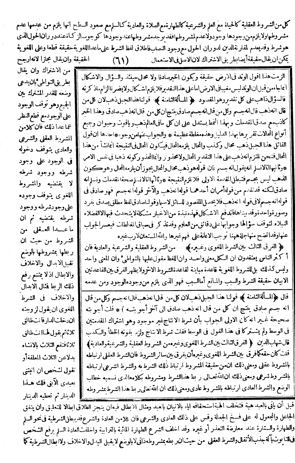 قَالَ: شِهَابُ الدِّينِ (الْفَرْقُ الثَّالِثُ بَيْنَ الشَّرْطِ اللُّغَوِيِّ وَغَيْرِهِ مِنْ الشُّرُوطِ الْعَقْلِيَّةِ وَالشَّرْعِيَّةِ وَالْعَادِيَّةِ)