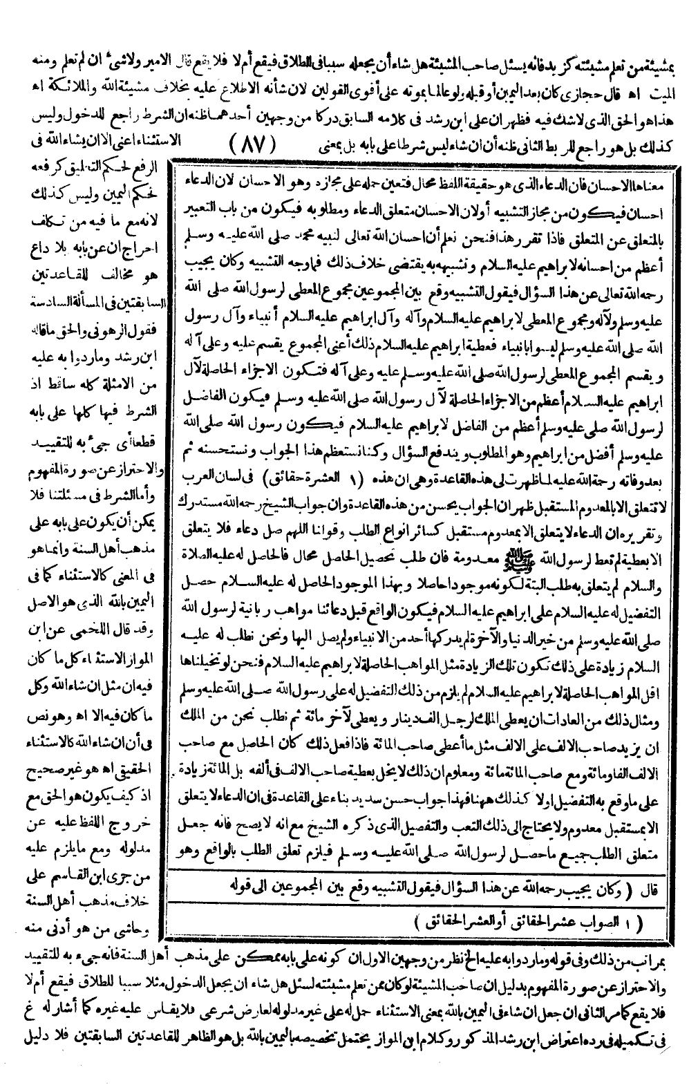 وَيَنْدَفِعُ السُّؤَالُ وَكُنَّا نَسْتَعْظِمُ هَذَا الْجَوَابَ وَنَسْتَحْسِنُهُ ثُمَّ بَعْدَ وَفَاتِهِ رَحْمَةُ اللَّهِ عَلَيْهِ لَمَّا ظَهَرَتْ لِي هَذِهِ الْقَاعِدَةُ وَهِيَ أَنَّ هَذِهِ (الْعَشَرَةُ حَقَائِقَ) فِي لِسَانِ الْعَرَبِ لَا تَتَعَلَّقُ إلَّا بِالْمَعْدُومِ الْمُسْتَقْبَلِ ظَهَرَ أَنَّ الْجَوَابَ يَحْسُنُ مِنْ هَذِهِ الْقَاعِدَةِ وَأَنَّ جَوَابَ الشَّيْخِ - رَحِمَهُ اللَّهُ - مُسْتَدْرَكٌ وَتَقْرِيرُهُ أَنَّ الدُّعَاءَ لَا يَتَعَلَّقُ إلَّا بِمَعْدُومٍ مُسْتَقْبَلٍ كَسَائِرِ أَنْوَاعِ الطَّلَبِ وَقَوْلُنَا اللَّهُمَّ صَلِّ دُعَاءٌ فَلَا يَتَعَلَّقُ إلَّا بِعَطِيَّةٍ لَمْ تُعْطَ لِرَسُولِ اللَّهِ - صَلَّى اللَّهُ عَلَيْهِ وَسَلَّمَ - مَعْدُومَةٍ فَإِنَّ طَلَبَ تَحْصِيلِ الْحَاصِلِ مُحَالٌ فَالْحَاصِلُ لَهُ - عَلَيْهِ الصَّلَاةُ وَالسَّلَامُ - لَمْ يَتَعَلَّقْ بِهِ طَلَبٌ أَلْبَتَّةَ لِكَوْنِهِ مَوْجُودًا حَاصِلًا وَبِهَذَا الْمَوْجُودُ الْحَاصِلُ لَهُ - عَلَيْهِ السَّلَامُ - حَصَلَ التَّفْضِيلُ لَهُ - عَلَيْهِ السَّلَامُ - عَلَى إبْرَاهِيمَ - عَلَيْهِ السَّلَامُ - فَيَكُونُ الْوَاقِعُ قَبْلَ دُعَائِنَا مَوَاهِبَ رَبَّانِيَّةً لِرَسُولِ اللَّهِ - صَلَّى اللَّهُ عَلَيْهِ وَسَلَّمَ - مِنْ خَيْرِ الدُّنْيَا وَالْآخِرَةِ لَمْ يُدْرِكْهَا أَحَدٌ مِنْ الْأَنْبِيَاءِ وَلَمْ يَصِلْ إلَيْهَا وَنَحْنُ نَطْلُبُ لَهُ - عَلَيْهِ السَّلَامُ - زِيَادَةً عَلَى ذَلِكَ تَكُونُ تِلْكَ الزِّيَادَةُ مِثْلَ الْمَوَاهِبِ الْحَاصِلَةِ لِإِبْرَاهِيمَ - عَلَيْهِ السَّلَامُ - فَنَحْنُ لَوْ تَخَيَّلْنَاهَا أَقَلَّ الْمَوَاهِبِ الْحَاصِلَةِ لِإِبْرَاهِيمَ - عَلَيْهِ السَّلَامُ - لَمْ يَلْزَمْ مِنْ ذَلِكَ التَّفْضِيلِ لَهُ عَلَى رَسُولِ اللَّهِ - صَلَّى اللَّهُ عَلَيْهِ وَسَلَّمَ -.