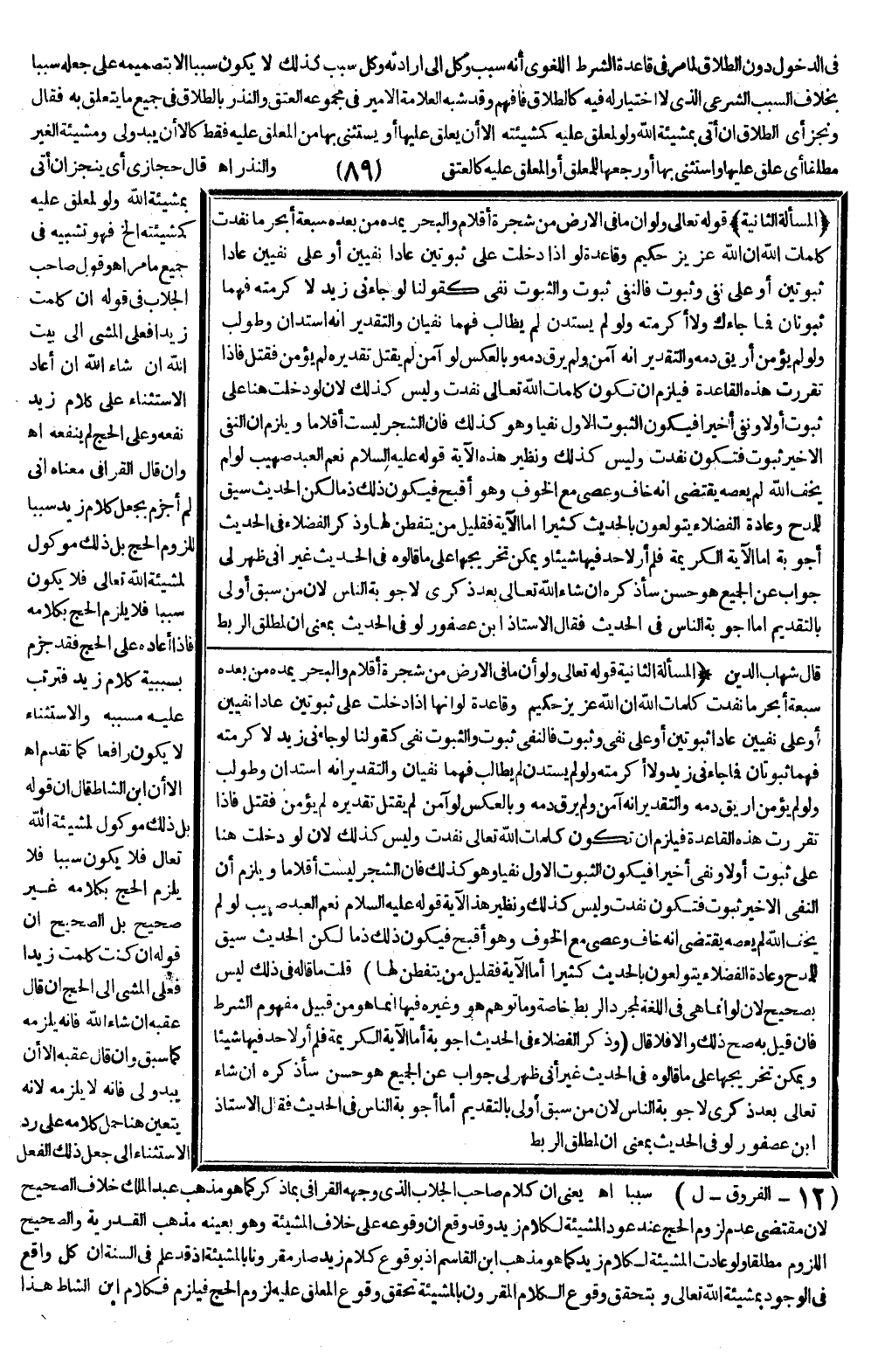 وَإِنْ قَالَ الْقَرَافِيُّ: مَعْنَاهُ أَنِّي لَمْ أَجْزِمْ بِجَعْلِ كَلَامِ زَيْدٍ سَبَبًا لِلُزُومِ الْحَجِّ بَلْ ذَلِكَ مَوْكُولٌ لِمَشِيئَةِ اللَّهِ تَعَالَى فَلَا يَكُونُ سَبَبًا فَلَا يَلْزَمُ الْحَجُّ بِكَلَامِهِ فَإِذَا أَعَادَهُ عَلَى الْحَجِّ فَقَدْ جَزَمَ بِسَبَبِيَّةِ كَلَامِ زَيْدٍ فَتَرَتَّبَ عَلَيْهِ مُسَبَّبُهُ وَالِاسْتِثْنَاءُ لَا يَكُونُ رَافِعًا كَمَا تَقَدَّمَ اهـ إلَّا أَنَّ ابْنَ الشَّاطِّ قَالَ: إنَّ قَوْلَهُ بَلْ ذَلِكَ مَوْكُولٌ لِمَشِيئَةِ اللَّهِ تَعَالَى فَلَا يَكُونُ سَبَبًا فَلَا يَلْزَمُ الْحَجُّ بِكَلَامِهِ غَيْرُ صَحِيحٍ بَلْ الصَّحِيحُ أَنَّ قَوْلَهُ إنْ كُنْت كَلَّمْت زَيْدًا فَعَلَيَّ الْمَشْيُ إلَى الْحَجِّ إنْ قَالَ عَقِبَهُ: إنْ شَاءَ اللَّهُ فَإِنَّهُ يَلْزَمُهُ كَمَا سَبَقَ وَإِنْ قَالَ عَقِبَهُ: إلَّا أَنْ يَبْدُوَ لِي فَإِنَّهُ لَا يَلْزَمُهُ لِأَنَّهُ يَتَعَيَّنُ هُنَا حَمْلُ كَلَامِهِ عَلَى رَدِّ الِاسْتِثْنَاءِ إلَى جَعْلِ ذَلِكَ الْفِعْلِ سَبَبًا اهـ.