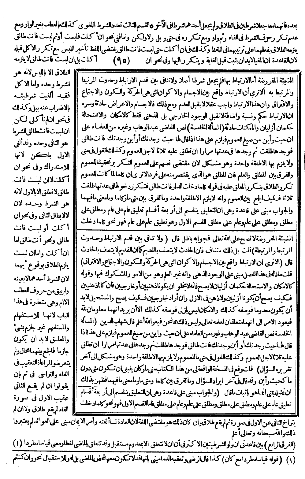 قَالَ: (وَالْجَوَابُ مَبْنِيٌّ عَلَى قَاعِدَةٍ وَهِيَ أَنَّ التَّعْلِيقَ يَنْقَسِمُ إلَى أَرْبَعَةِ أَقْسَامٍ: تَعْلِيقُ عَامٍّ عَلَى عَامٍّ وَمُطْلَقٍ عَلَى مُطْلَقٍ وَمُطْلَقٍ عَلَى عَامٍّ وَعَامٍّ عَلَى مُطْلَقٍ فَأَمَّا الْقِسْمُ الْأَوَّلُ فَهُوَ نَحْوُ كُلَّمَا دَخَلْت