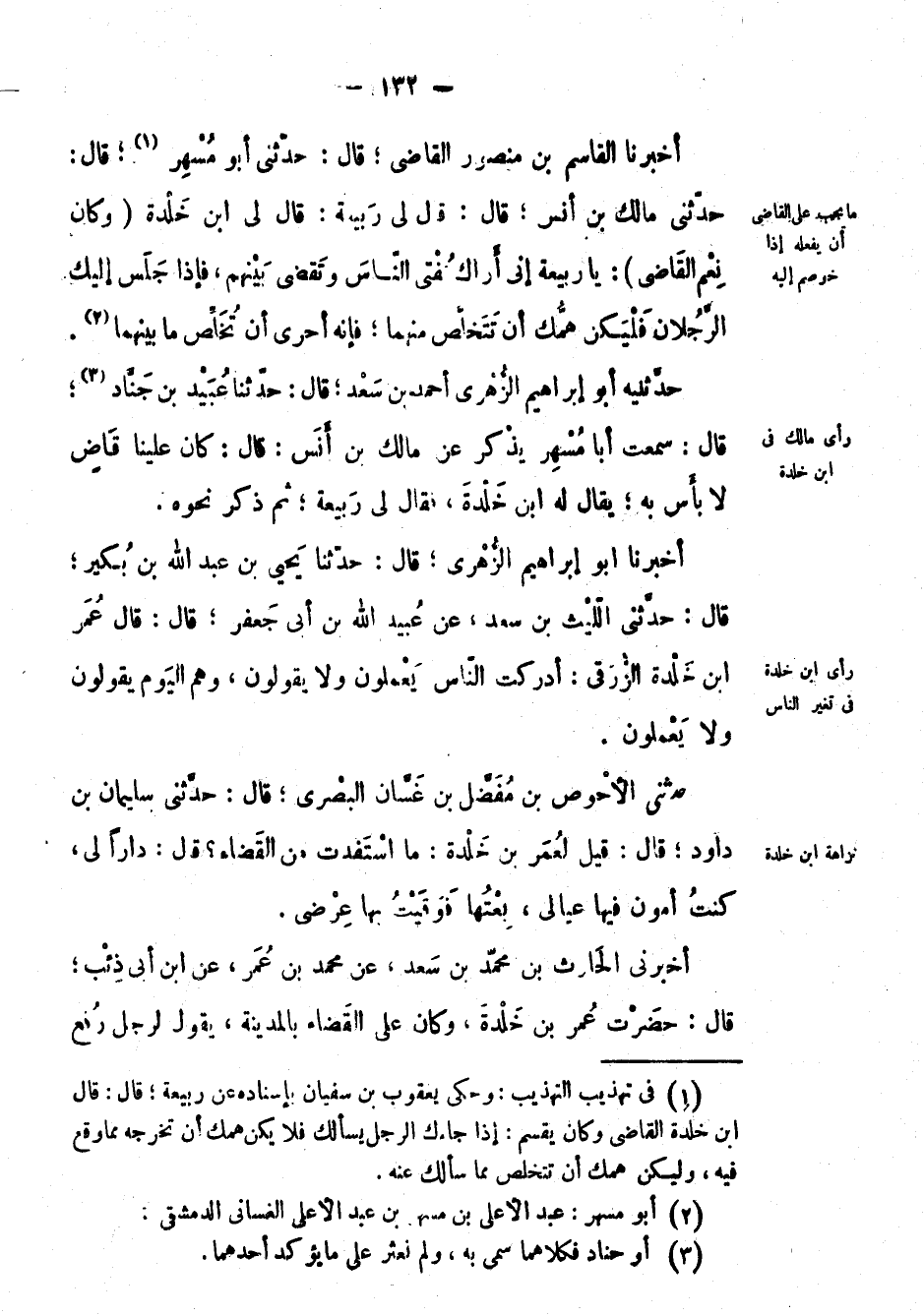 حَدَّثَنِيه أَبُو إبراهيم الزهري أَحْمَد بْن سعد؛ قال: حَدَّثَنَا عبيد بْن جناد؛ قال: سمعت أبا مسهر يذكر عَن مالك بْن أنس: قال: كان علينا قاض لا بأس به؛ يُقَالُ: له ابن خلدة، فَقَالَ لي: ربيعة؛ ثم ذكر نحوه.