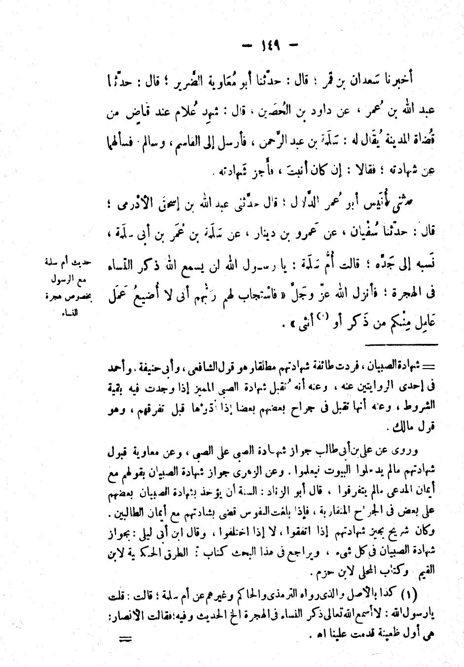 حَدَّثَنِي أنيس أَبُو عُمَر الدلال؛ قَالَ: حَدَّثَنِي عَبْدُ اللهِ بْن إسحاق الأدرمي؛ قال: حَدَّثَنَا سُفْيَان، عَن عَمْرو بْن دينار، عَن سلمة بْن عُمَر بْن أبي سلمة، نسبه إِلَى جده؛ قالت أم سلمة: يا رسول الله لن يسمع الله ذكر النِّسَاء في الهجرة؛ فأنزل الله عز وجل: فَاسْتَجَابَ لَهُمْ رَبُّهُمْ أَنِّي لاَ أُضِيعُ عَمَلَ عَامِلٍ مِّنكُم مِّن ذَكَرٍ أَوْ أُنثَى [آل عِمْرَان: 195] .