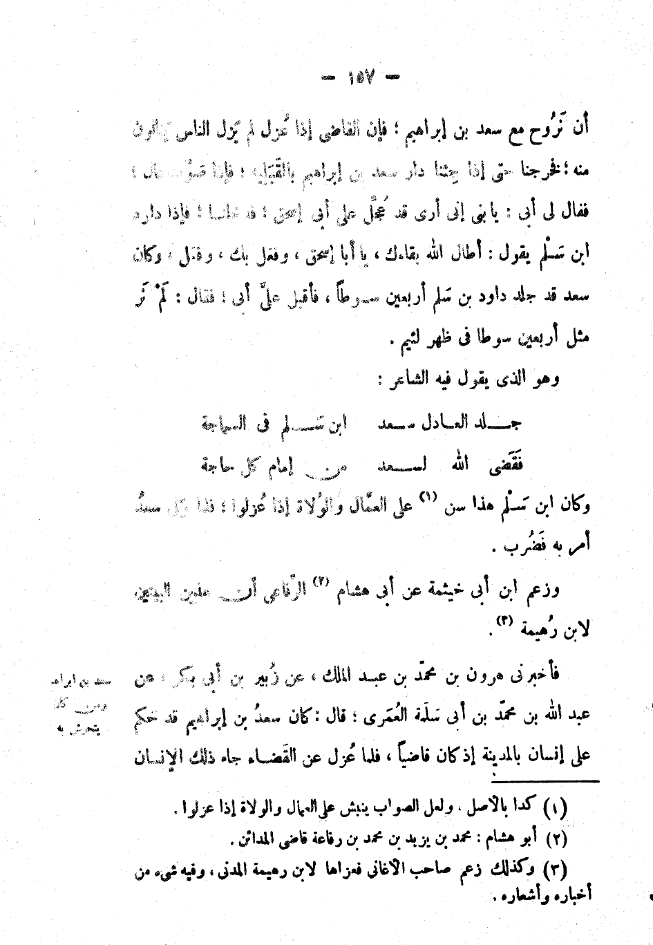 فأَخْبَرَنِي هارون بْن مُحَمَّد بْن عَبْد الملك، عَن زبير بْن أبي بكر، عَنْ عَبْدِ اللهِ بْن مُحَمَّد بْن أبي سلمة الِعُمَرَي؛ قال: كان سعد بْن إبراهيم قد حكم على إنسان بالمدينة إِذ كان قاضياً، فلما عزل عَن القضاء جاء ذلك الإنسان