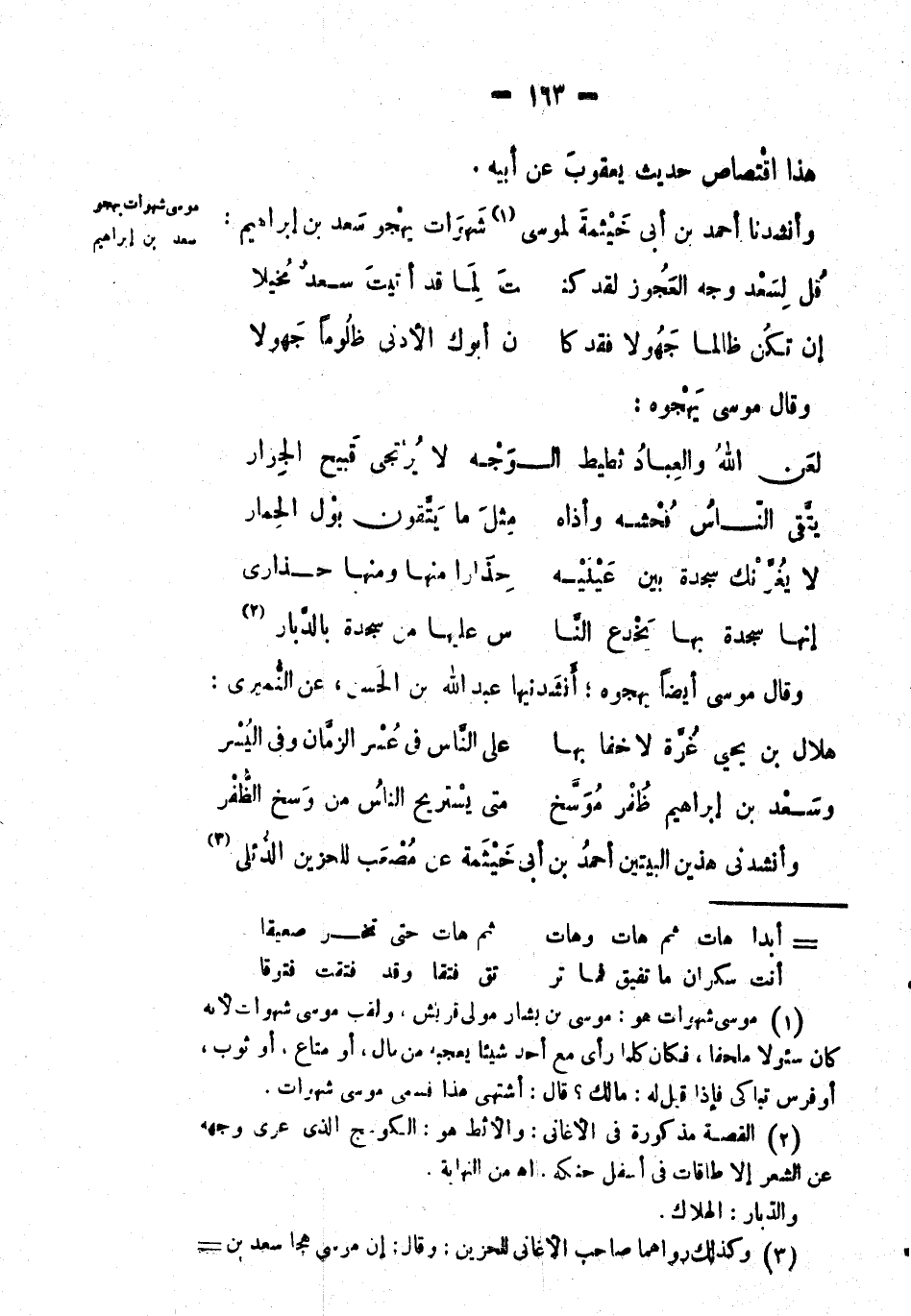 وأنشدنا أَحْمَد بْن أبي خيثمة لموسى شهوات يهجو سعد بْن إبراهيم: