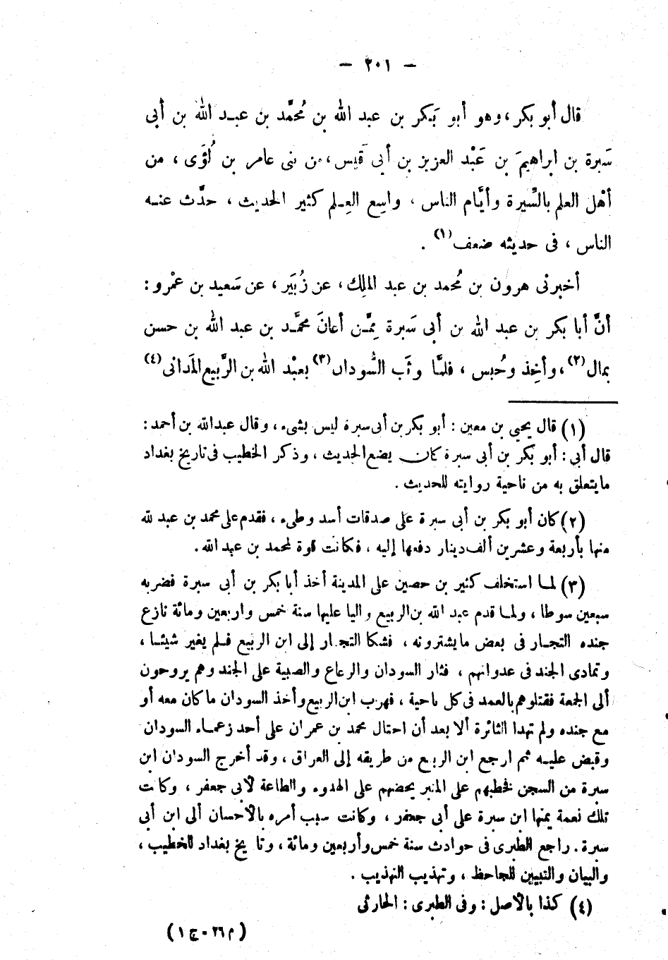 قَالَ: أَبُو بكر، وهو أَبُو بكر بْن عَبْد اللهِ بْن مُحَمَّد بْن عَبْد اللهِ بْن أبي سبرة بْن إبراهيم بْن عَبْد العزيز بْن أبي قيس، من بني عامر بْن لؤي، من أهل العلم بالسيرة وأيام الناس، واسع العلم كثير الحديث، حدث عنه الناس، في حديثه ضعف.
