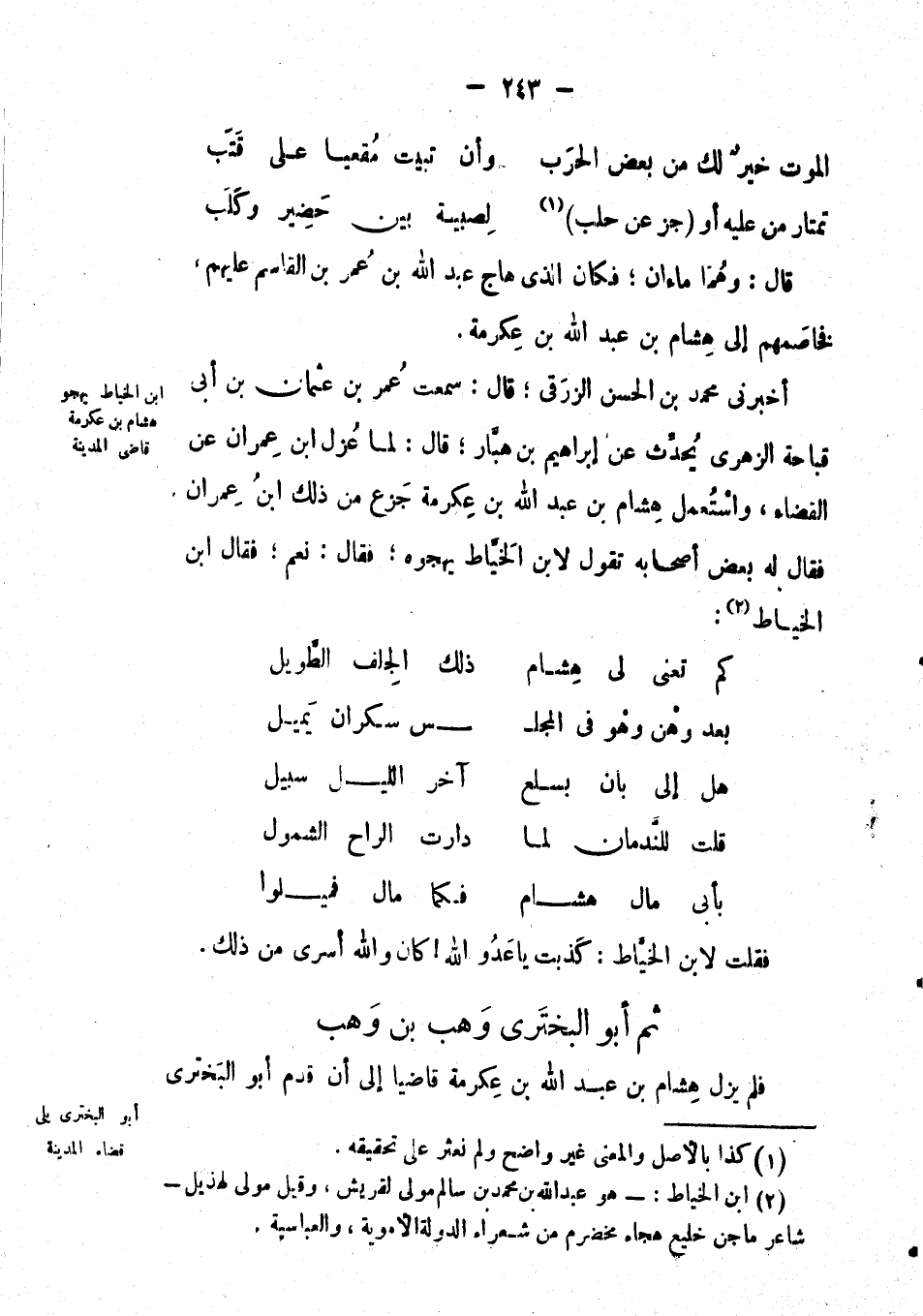 فقلت لابن الخياط: كذبت يا عدو الله! كان والله أسرى من ذلك. ثم
