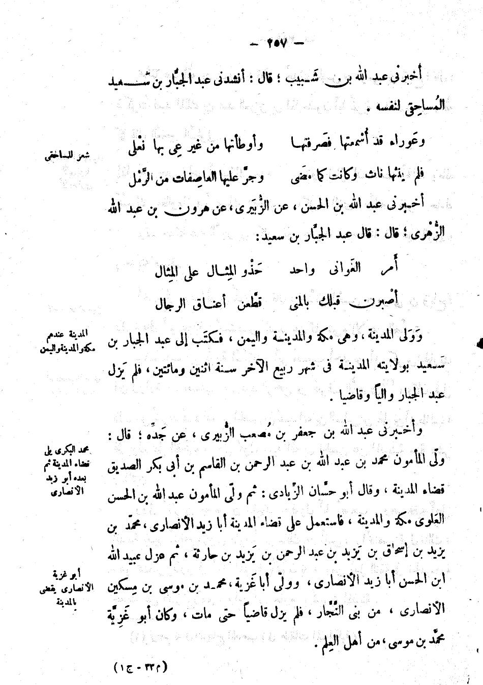 وأَخْبَرَنِي عَبْد اللهِ بْن جعفر بْن مصعب الزبيري، عَن جده؛ قال: ولي المأمون مُحَمَّد بْن عَبْد اللهِ بْن عَبْد الرحمن بْن القاسم بْن أبي بكر الصديق قضاء المدينة.
