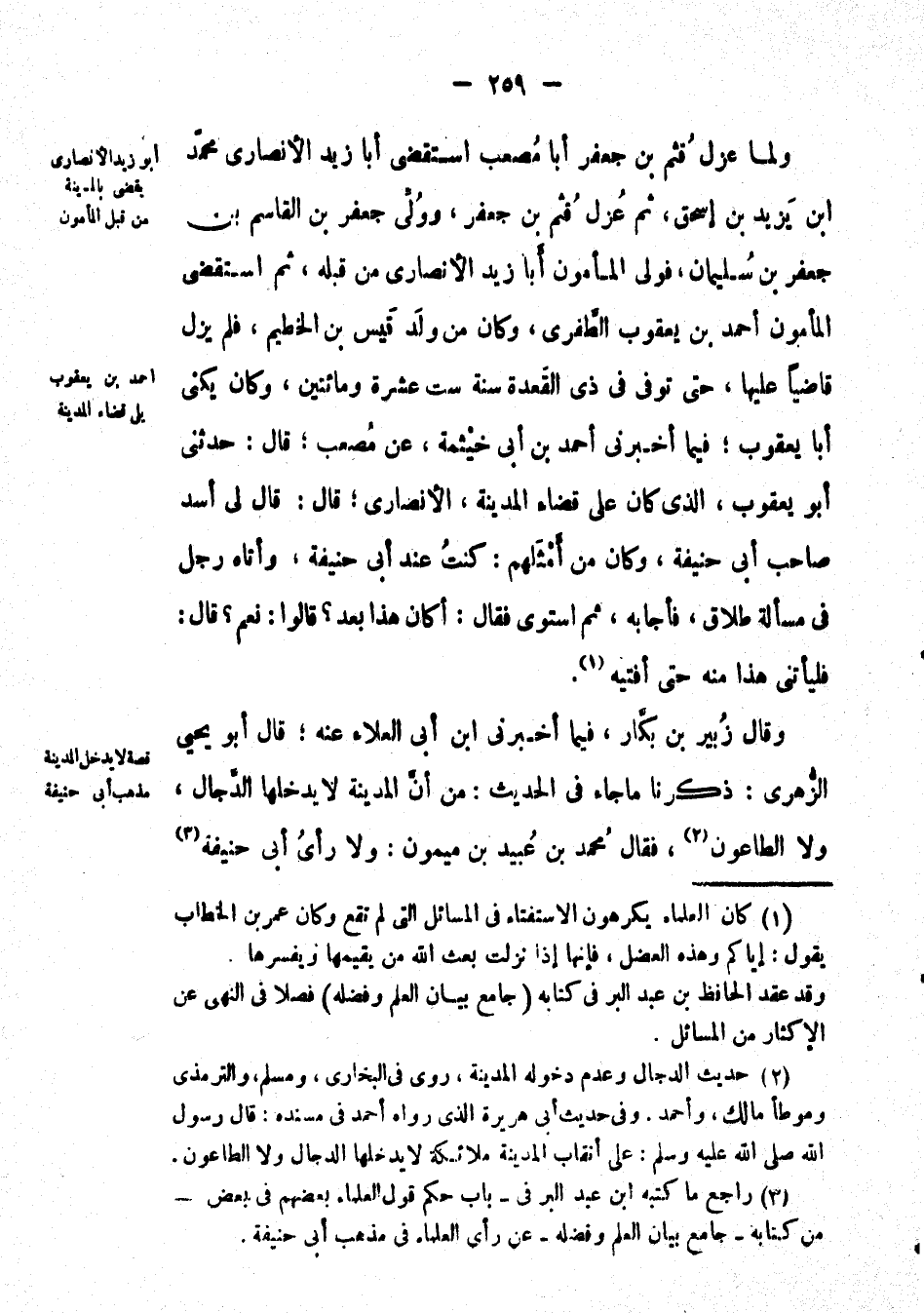 ثم استقضى المأمون أَحْمَد بْن يعقوب الطفري، وكان من ولد قيس بْن الخطيم، فلم يزل قاضياً عليها، حتى توفي في ذي القعدة سنة ست عشرة ومائتين، وكان يكنى أبا يعقوب؛ فيما أَخْبَرَنِي أَحْمَد بْن أبي خيثمة، عَن مصعب؛ قال: حَدَّثَنِي أَبُو يعقوب، الذي كان على قضاء المدينة، الأنصاري؛ قال: قَالَ لي: أسد صاحب أبي حنيفة، وكان من أمثلهم: كنت عند أبي حنيفة، وأتاه رجل في مسألة طلاق، فأجابه، ثم استوى فقال: أكان هَذَا بعد ? قالوا: نعم? قال: فليأتني هَذَا منه حتى أفتيه.