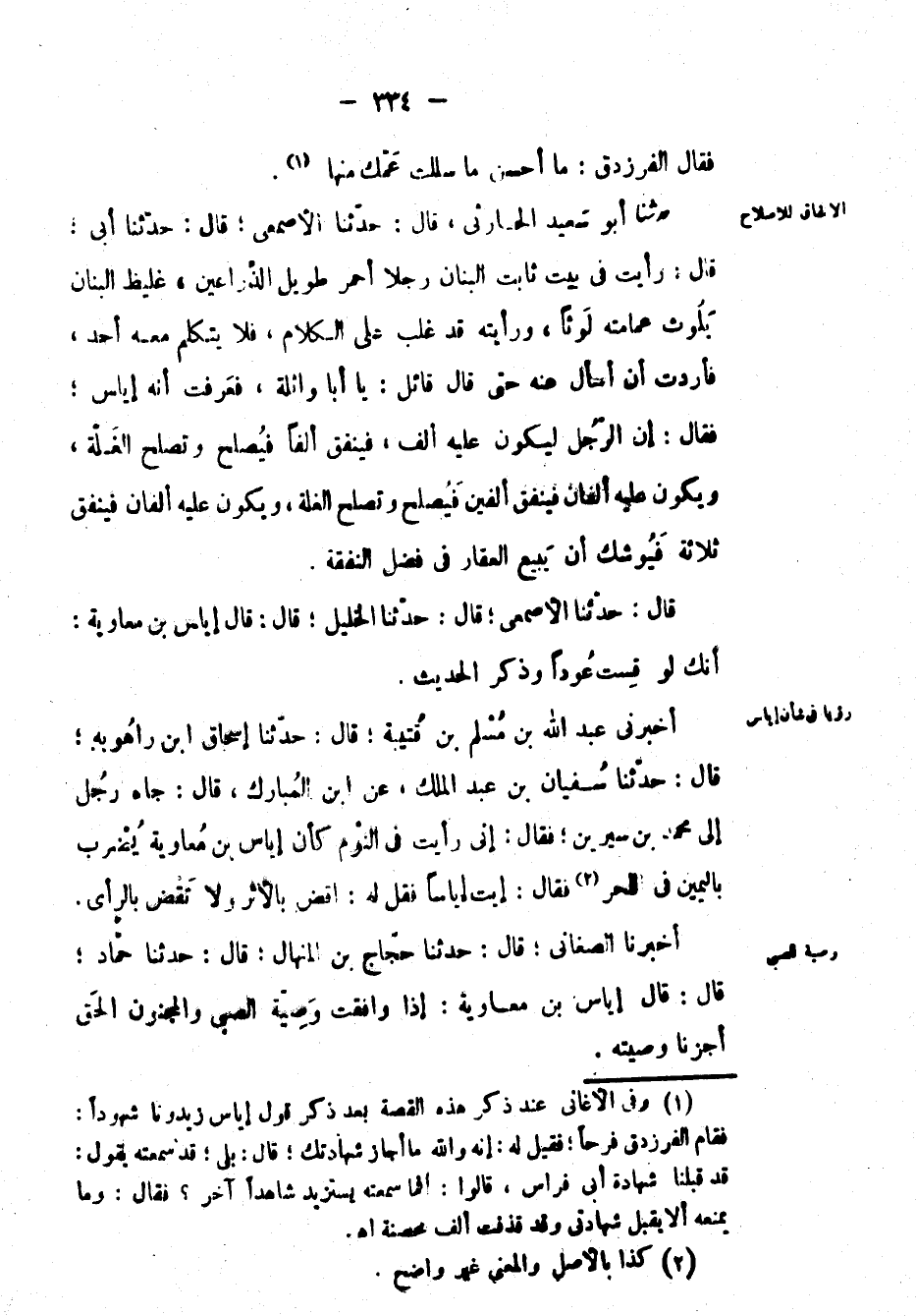 قال: حَدَّثَنَا الأصمعي؛ قال: حَدَّثَنَا الخليل؛ قال: قَالَ: إياس بْن معاوية: أنك لو قست عوداً وذكر الحديث.
