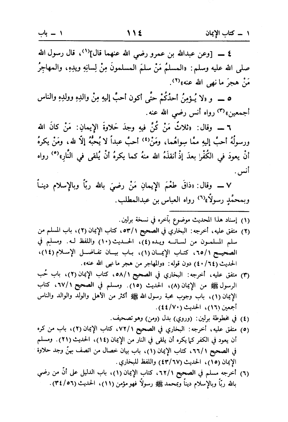 (¬5) متفق عليه، أخرجه: البخاري في الصحيح 1/ 72، كتاب الإيمان (2)، باب من كره أن يعود في الكفر كما يكره أن يلقى في النار من الإيمان (14)، الحديث (21). ومسلم في الصحيح 1/ 66، كتاب الإيمان (1)، باب بيان خصال من اتصف بهنّ وجد حلاوة الإِيمان (15)، الحديث (67/ 43) واللفظ للبخاري.
