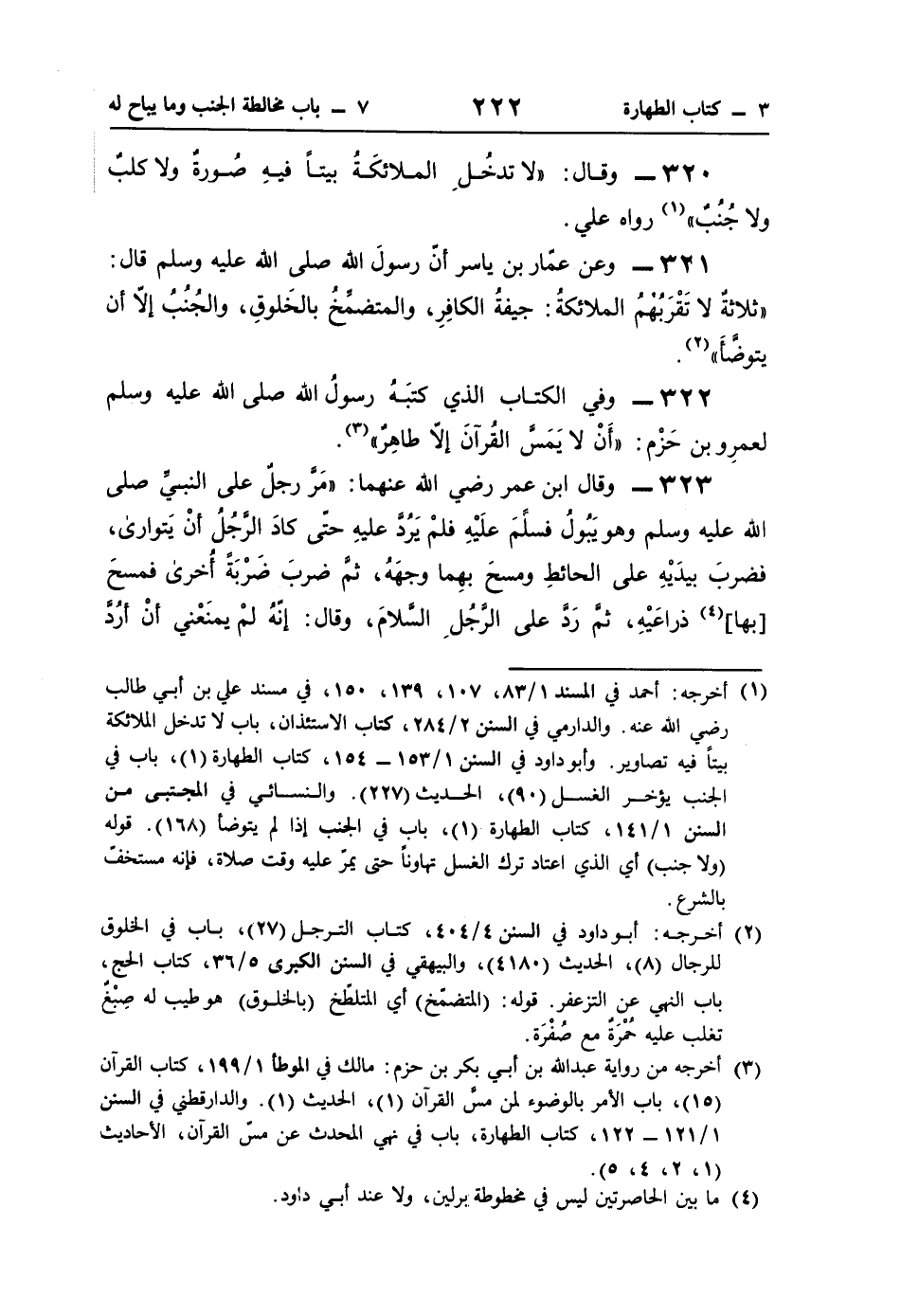 322 - وفي الكتاب الذي كتبَهُ رسولُ اللَّه صلى اللَّه عليه وسلم لعمرِو بن حَزْم: "أَنْ لا يَمَسَّ القُرآنَ إلَّا طاهِرٌ" (¬3).
