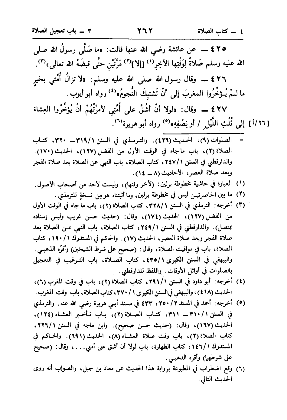 426 - وقال رسول اللَّه صلى اللَّه عليه وسلم: "لا تزالُ أُمَّتي بخيرٍ ما لم يُؤخِّرُوا المغربَ الى أنْ تَشتبِكَ النُّجومُ" (¬4) رواه أبو أيوب.