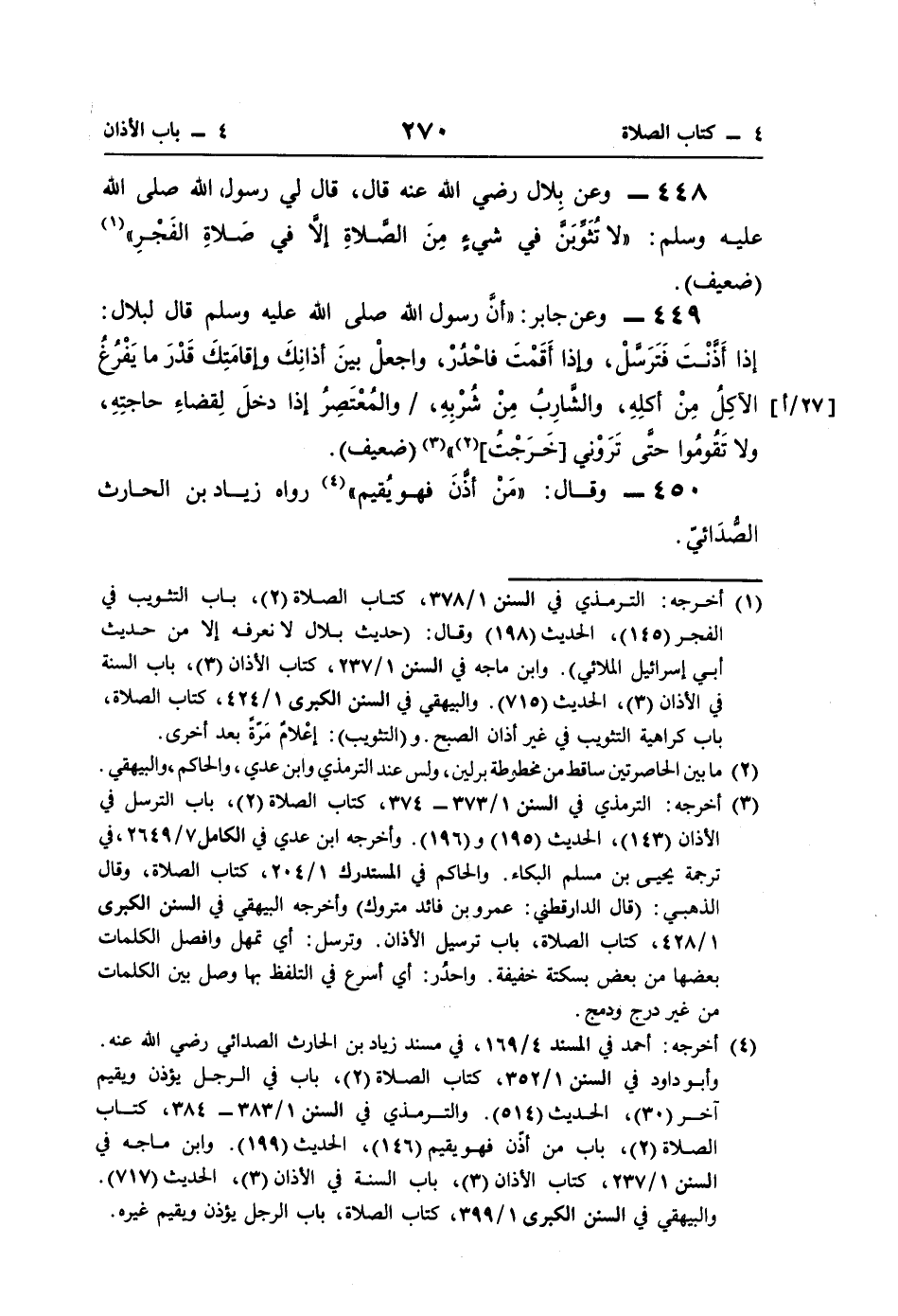 450 - وقال: "مَنْ أذَّنَ فهو يُقيم" (¬4) رواه زياد بن الحارث الصُّدَائيّ.