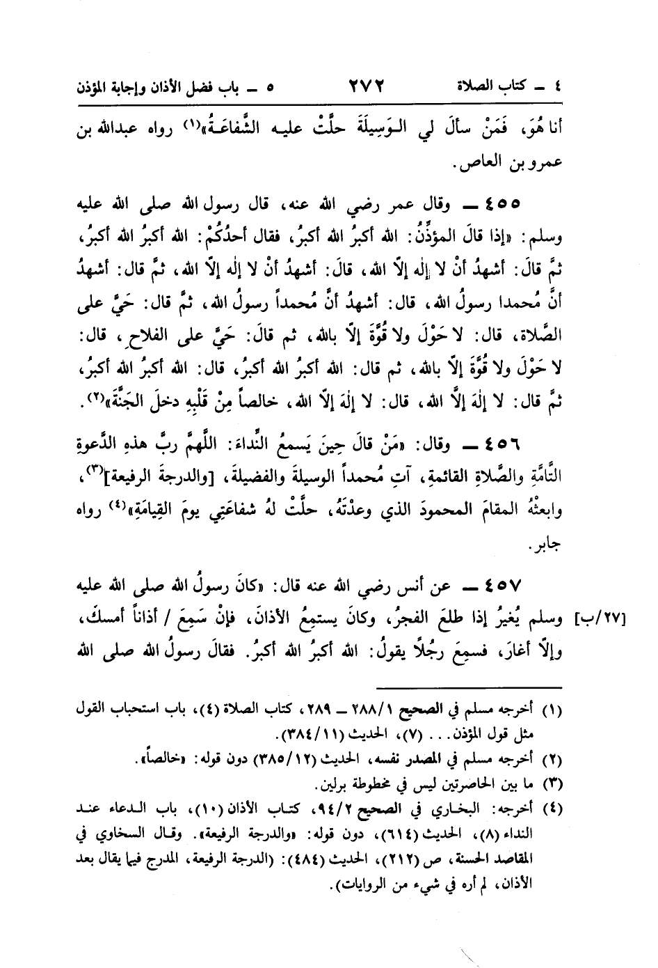 (¬1) أخرجه مسلم في الصحيح 1/ 88 - 289، كتاب الصلاة (4)، باب استحباب القول مثل قول المؤذن. . . (7)، الحديث (11/ 384).