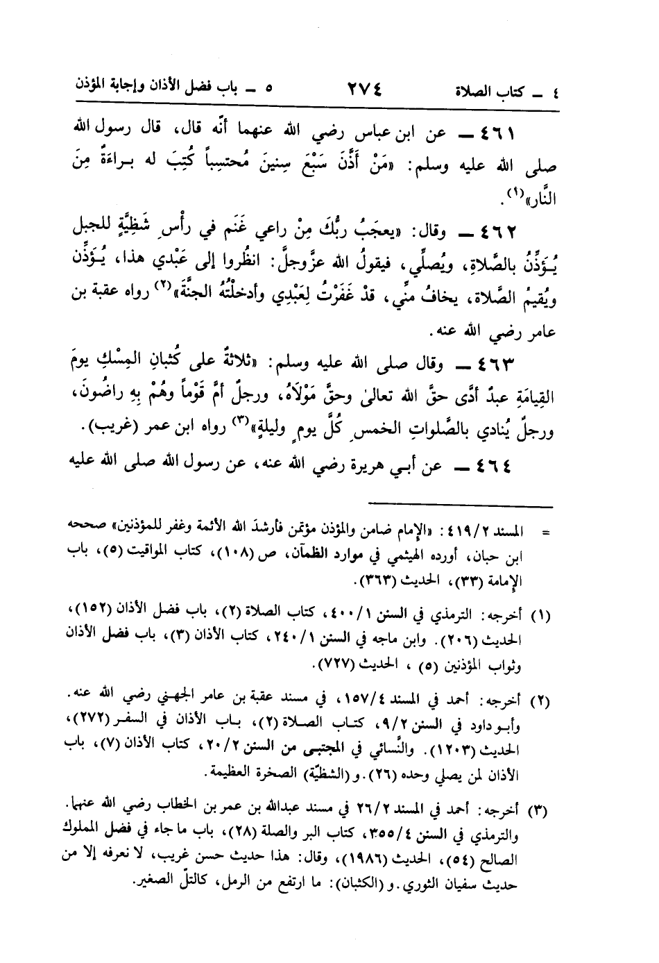 461 - عن ابن عباس رضي اللَّه عنهما أنّه قال، قال رسول اللَّه صلى اللَّه عليه وسلم: "مَنْ أَذَّنَ سَبْعَ سِنينَ مُحتسِبًا كُتِبَ له براءَة مِنَ النَّار" (¬1)