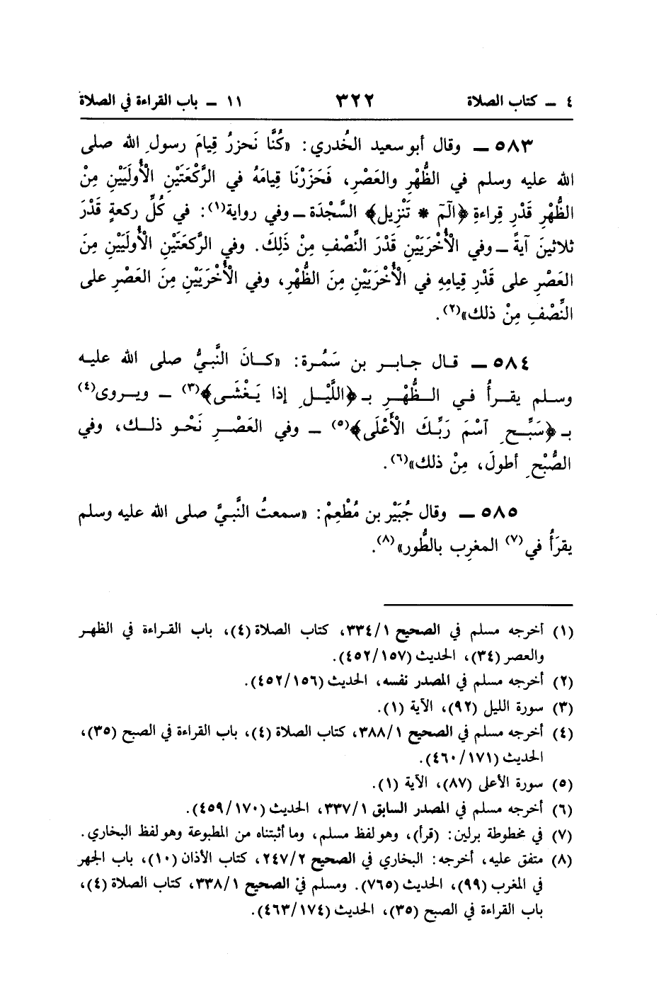584 - قال جابر بن سَمُرة: "كانَ النَّبيُّ صلى اللَّه عليه وسلم يقرأُ في الظُّهْرِ بـ {وَاللَّيْلِ إِذَا يَغْشَى} (¬3) -ويروى (¬4) بـ {سَبِّحِ اسْمَ رَبِّكَ الْأَعْلَى} (¬5) - وفي العَصْرِ نَحْو ذلك، وفي الصُّبْحِ أطولَ، مِنْ ذلك" (¬6).