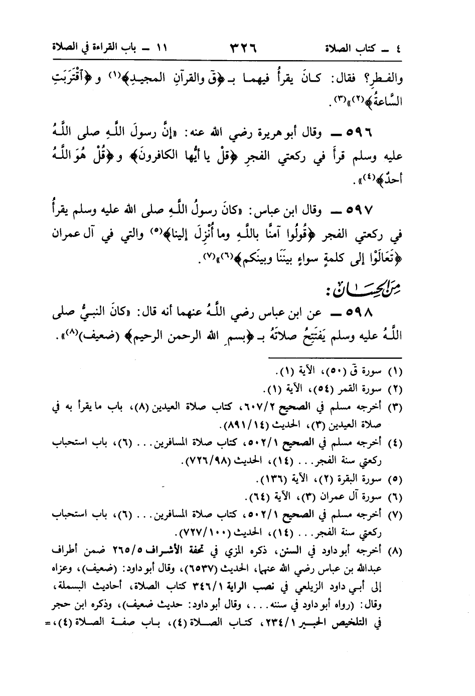 (¬4) أخرجه مسلم في الصحيح 1/ 502، كتاب صلاة المسافرين. . . (6)، باب استحباب ركعتي سنة الفجر. . . (14)، الحديث (98/ 726).