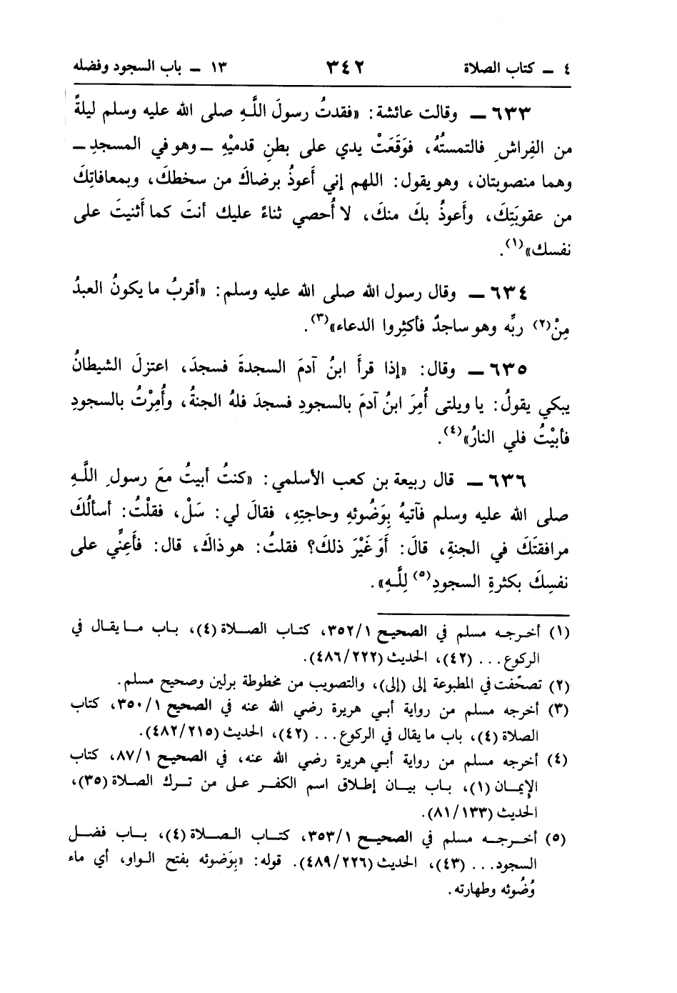 636 - قال ربيعة بن كعب الأسلمي: "كنتُ أبيتُ معَ رسولِ اللَّهِ صلى اللَّه عليه وسلم فآتيهُ بِوَضُوئهِ وحاجتِهِ، فقالَ لي: سَلْ، فقلْتُ: أسألُكَ مرافقتَكَ في الجنّةِ، قالَ: أَوَ غَيْرَ ذلكَ؟ فقلتُ: هو ذاكَ، قال: فأَعِنِّي على نفسِكَ بكثرةِ السجودِ (¬5) للَّهِ".