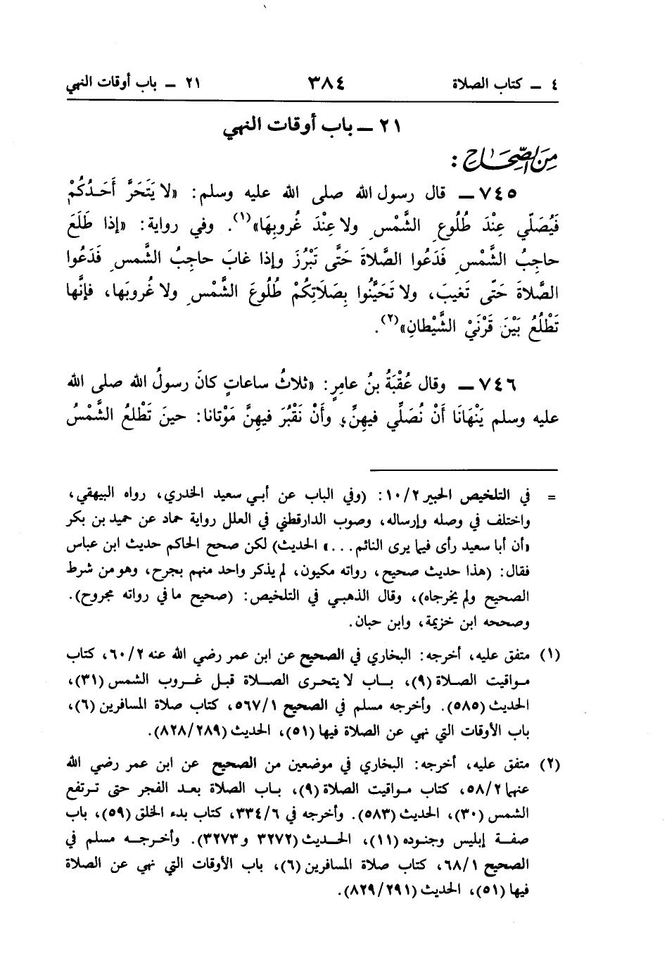 21 - باب أوقات النهي
