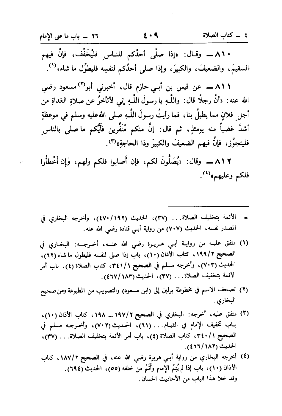 (¬4) أخرجه البخاري من رواية أبي هريرة رضي اللَّه عنه، في الصحيح 2/ 187، كتاب الأذان (10)، باب اذا لم يُتِمّ الإمام وأَتَمَّ من خلفه (55)، الحديث (694).